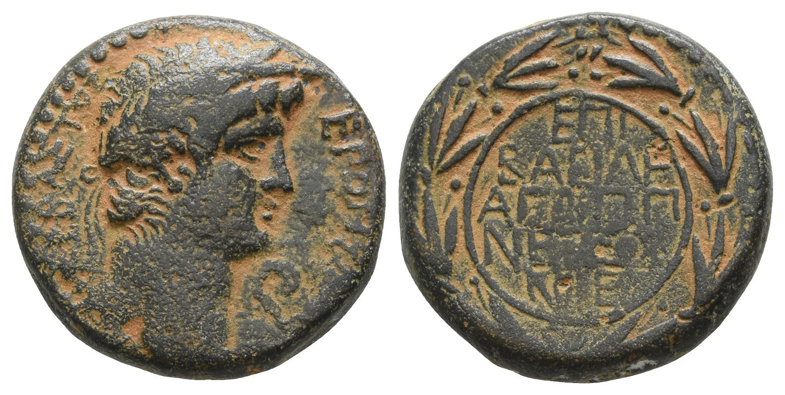 Nero, with Agrippa II AE 24mm of Caesarea Paneas (as Neronias), Judaea. Struck under Agrippa II, AD 61-68.