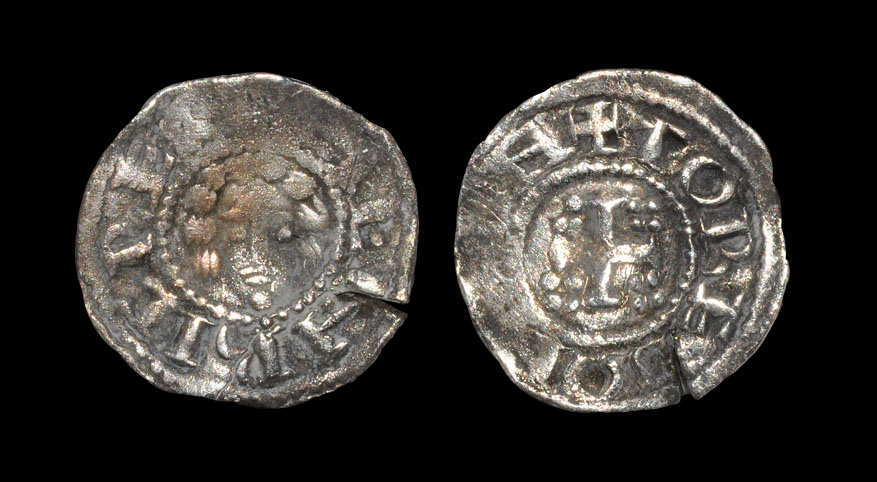 Round halfpennies are known, mostly from single specimens, for some ten mints (of about fifty-nine mints that struck under Henry I) at Hereford (Ailred), Lincoln (Lefric), London ([-]odred), Norwich (Thot and Turstan), Oxford (Aethelnoth), Sandwich (Adalbot, including a unique coin muled with a class 9 penny reverse), Wallingford (Osulf), Wilton (Aethelweard), Winchester (Alfwine, Godwine and Wigmund) and York (Forna/Foren); this specimen seems to be a new die pair for the moneyer Thodred at London mint; a moneyer of this name also struck pennies of several classes for Henry I at London.
