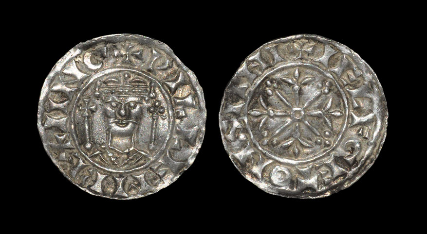 1072-1074 AD, BMC type iv. Obv: facing bust with cross patteé headed sceptre left and cross botonné headed right and PILLEM REX IING legend. Rev: cross fleury with annulet centre over saltire botonné and +IELFGETONSIINI legend for the moneyer Aelfget at Sandwich mint. 1.29 grams.