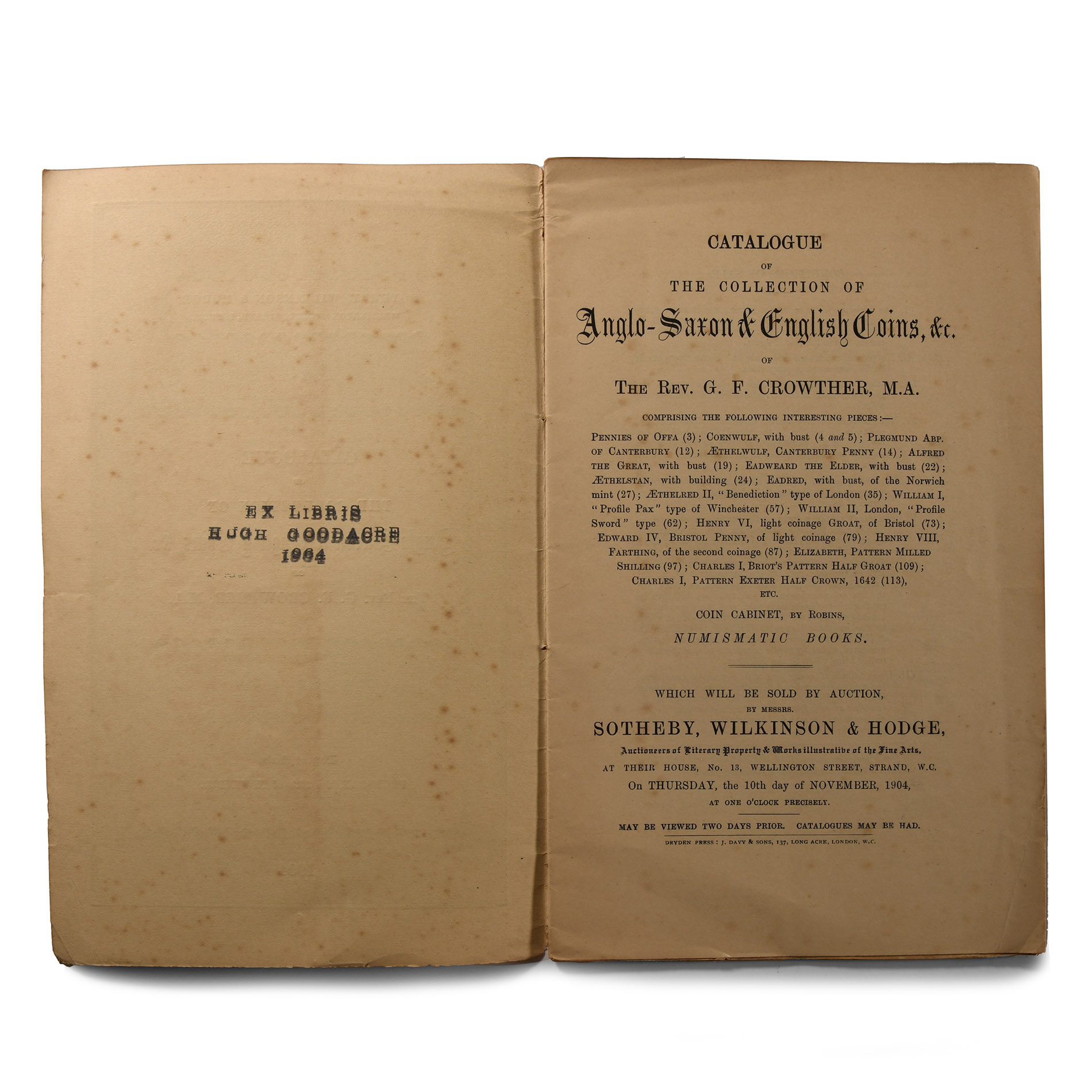 Sotheby Wilkinson & Hodge Sale Catalogue - Collection of Anglo-Saxon & English Coins of The Rev. G. F. Crowther - 10th November 1904 - 19pp, 1 plate. 52 grams, 25.2 x 16 cm