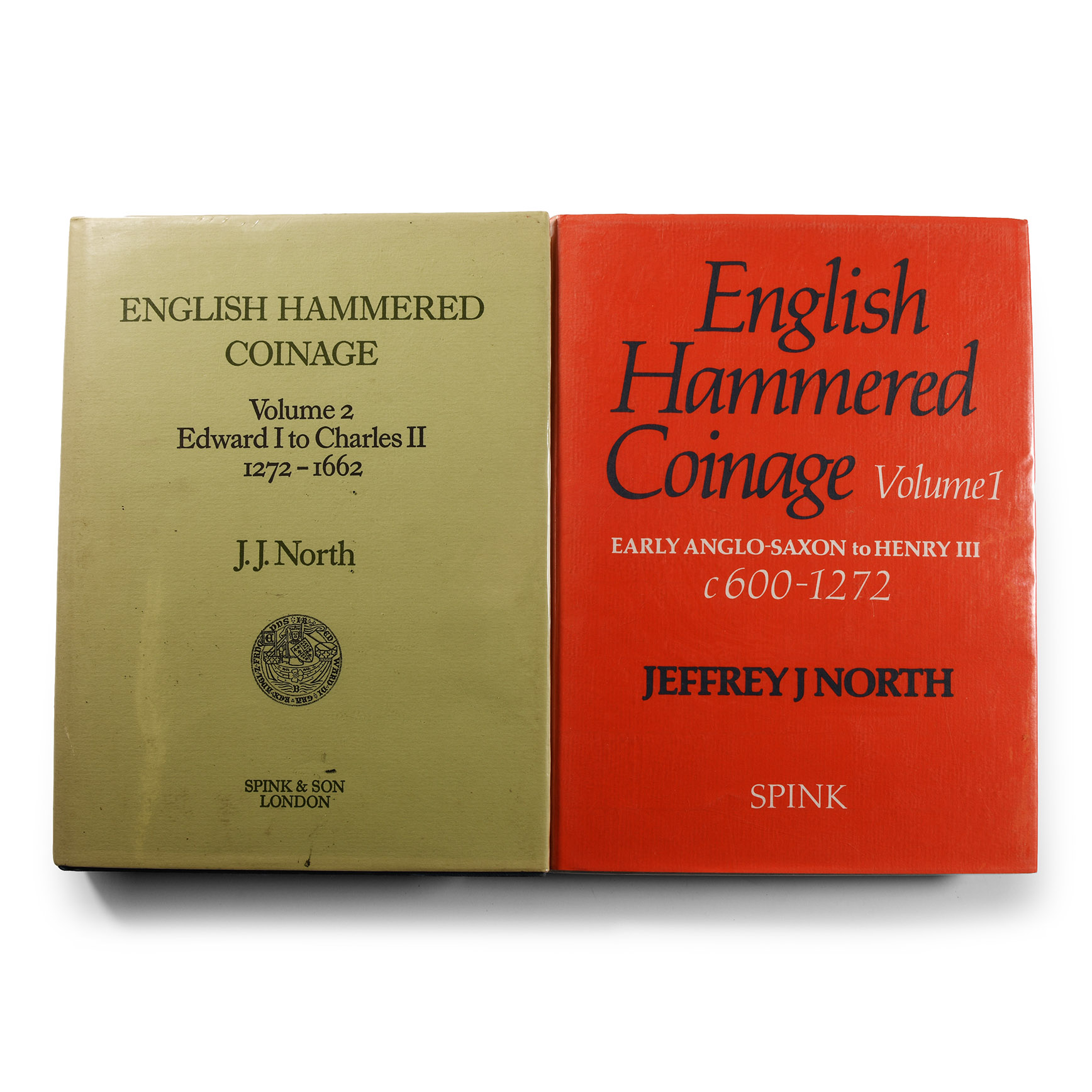 North, J.J. - English Hammered Coinage, Volume I. Early Anglo-Saxon to Henry III c.650-1272 - London, 1963, hardback with dustwrapper, 200 pp., 32 monochrome plates; Volume II. Edward I to Charles II 1272-1662, London, 1960, hardback with dustwrapper, 181pp., 10 monochrome plates. 2.06 kg total, 25.5 x 19 cm