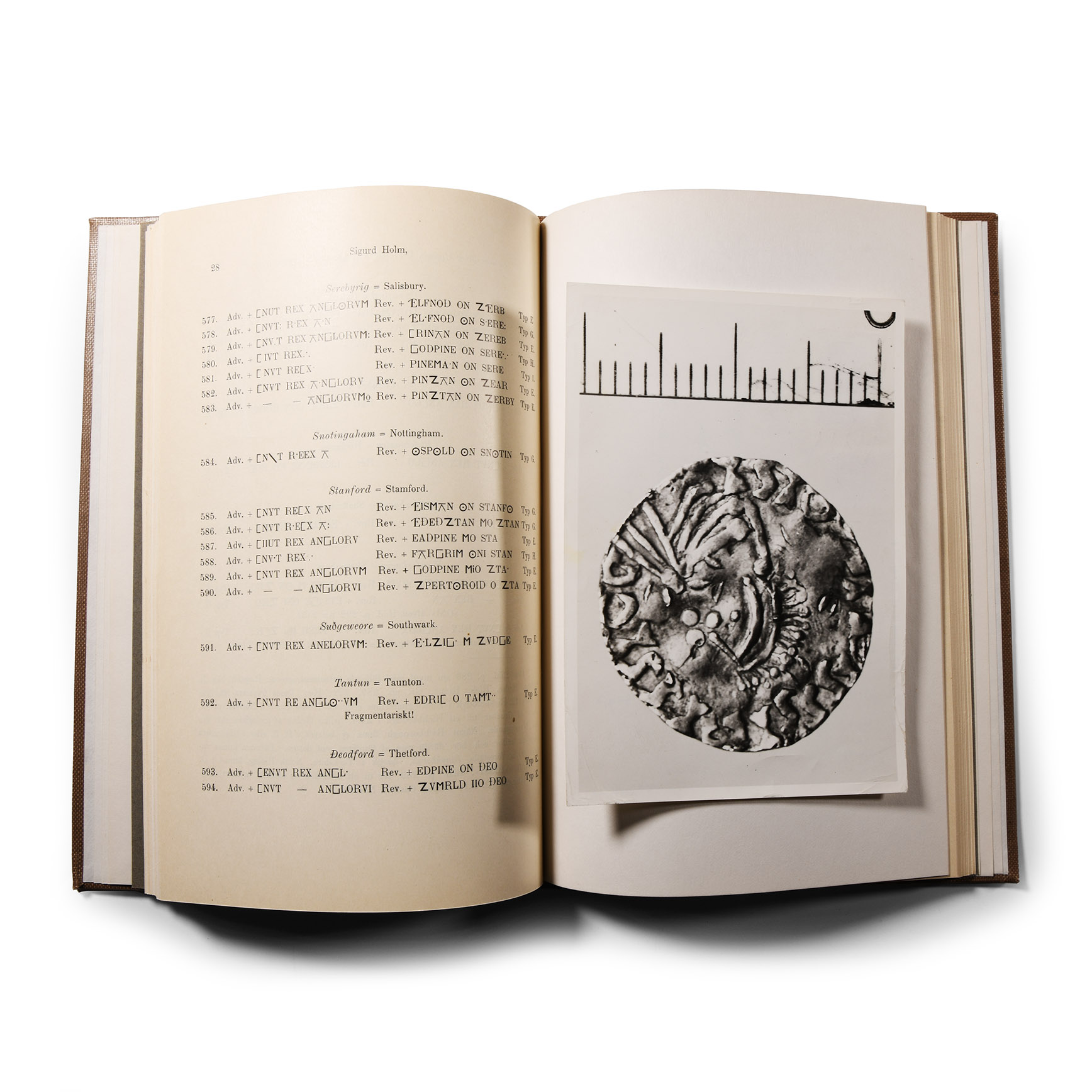Sigurd Holm - Studier öfver Uppsala Universitets Anglosaxiska Myntsamling - AB Akademiska Bokhandeln, Uppsala, 1917 - card-cover offprint rebound in hardback with cloth covers and gold titling to spine - 75 pp - author's proof copy without plates, pencilled notations - supplied with invoice from J.S.Wilson & Son dated 8th August 1978. 508 grams, 24.2 x 16.5 cm