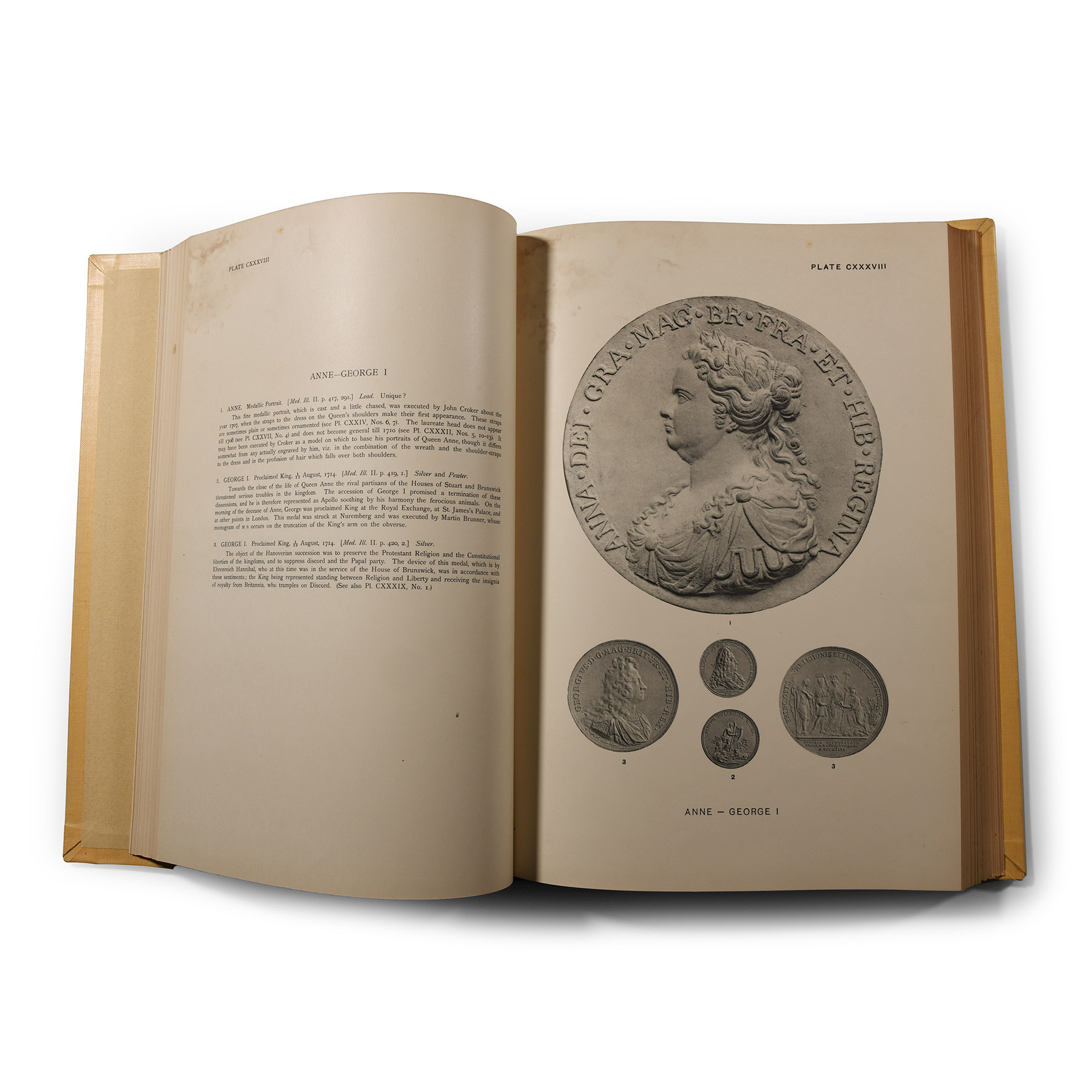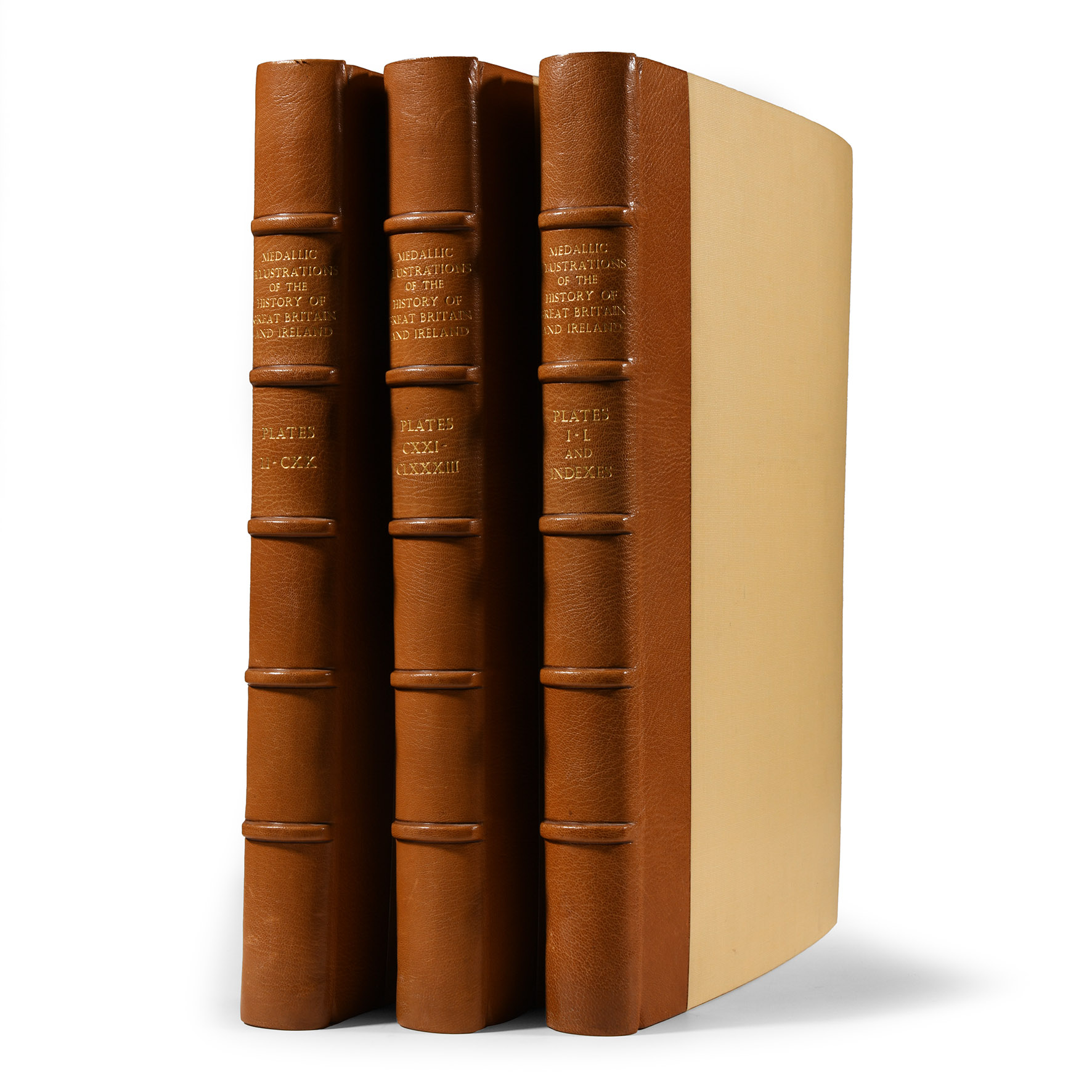 Medallic Illustrations of the History of Great Britain and Ireland, Plates I-L, LI-CXX & CXXI-CXXX - Trustees of the British Museum, London, 1911 - hardback. cloth cover with leather spine, gold titling - (1) 75 pp, 50 plates, (2) 70 plates, (3) 42 plates. 13.9 kg total, 41.7 x 30.5 cm each