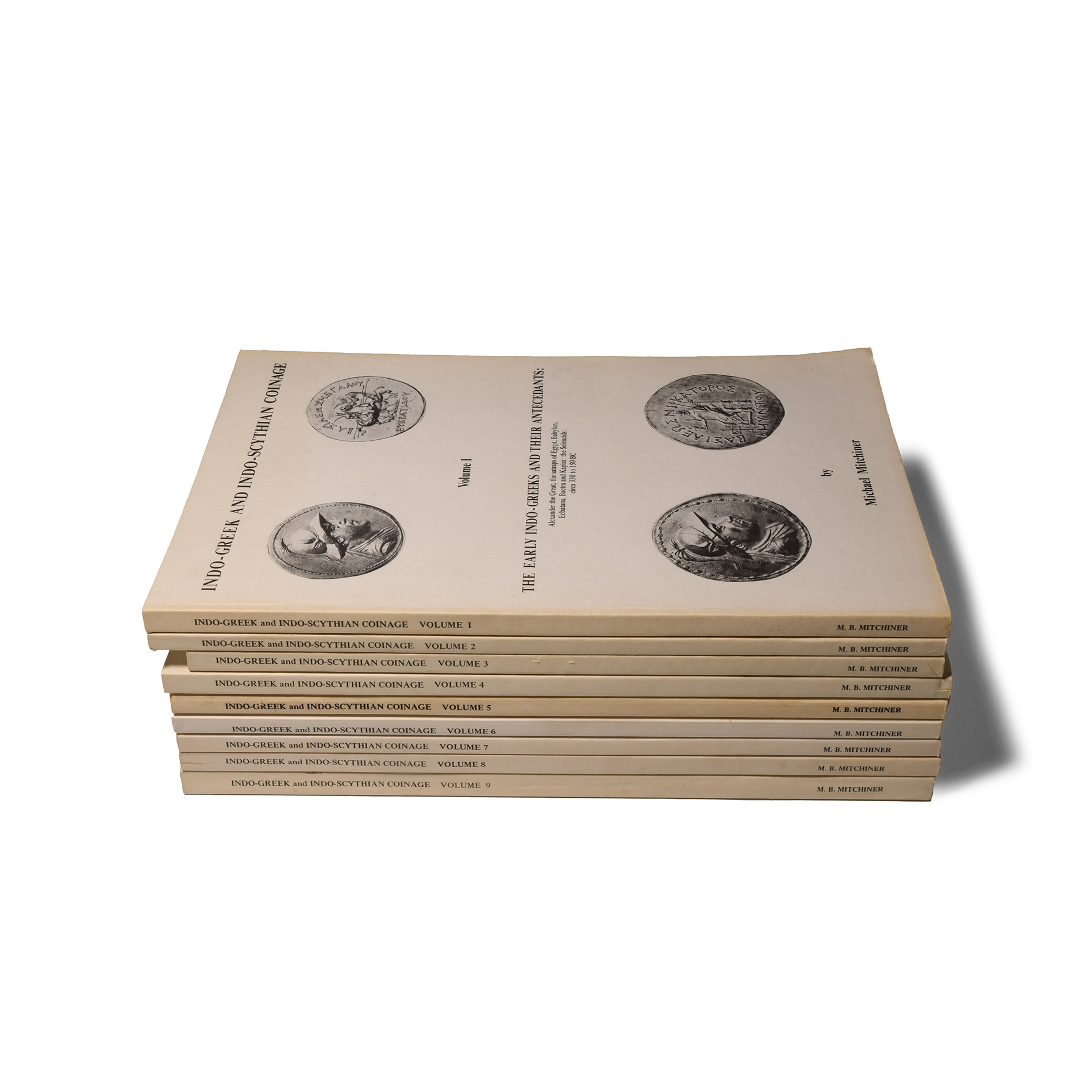 Mitchiner, Michael, Indo-Greek and Scythian Coinage, volumes 1 to 9; paperback; illustrated. 5 kg total, 31 x 21 cm each