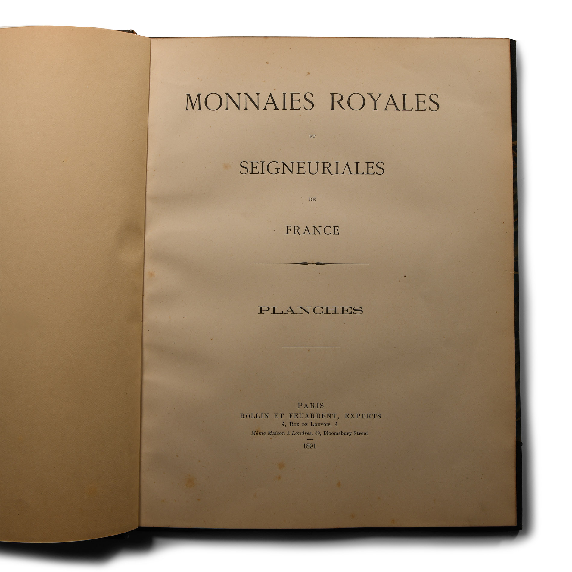 Monnaies Royales et Seigneuriales de France: Planches - Rollin & Feuardent, Paris, 1891 - hardback in half-calf binding, marbled boards, gold titling to spine - 26 plates, tables. 897 grams, 31.5 x 25 cm