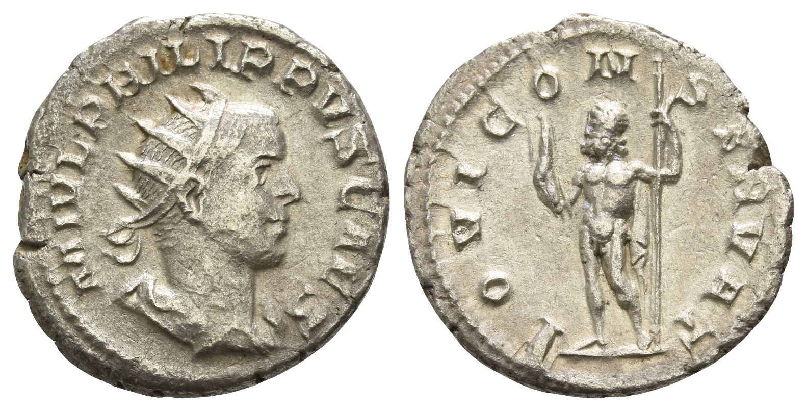 Back to previous pagePhilip II, as Caesar AR Antoninianus. AD 244-247. Rome mint.