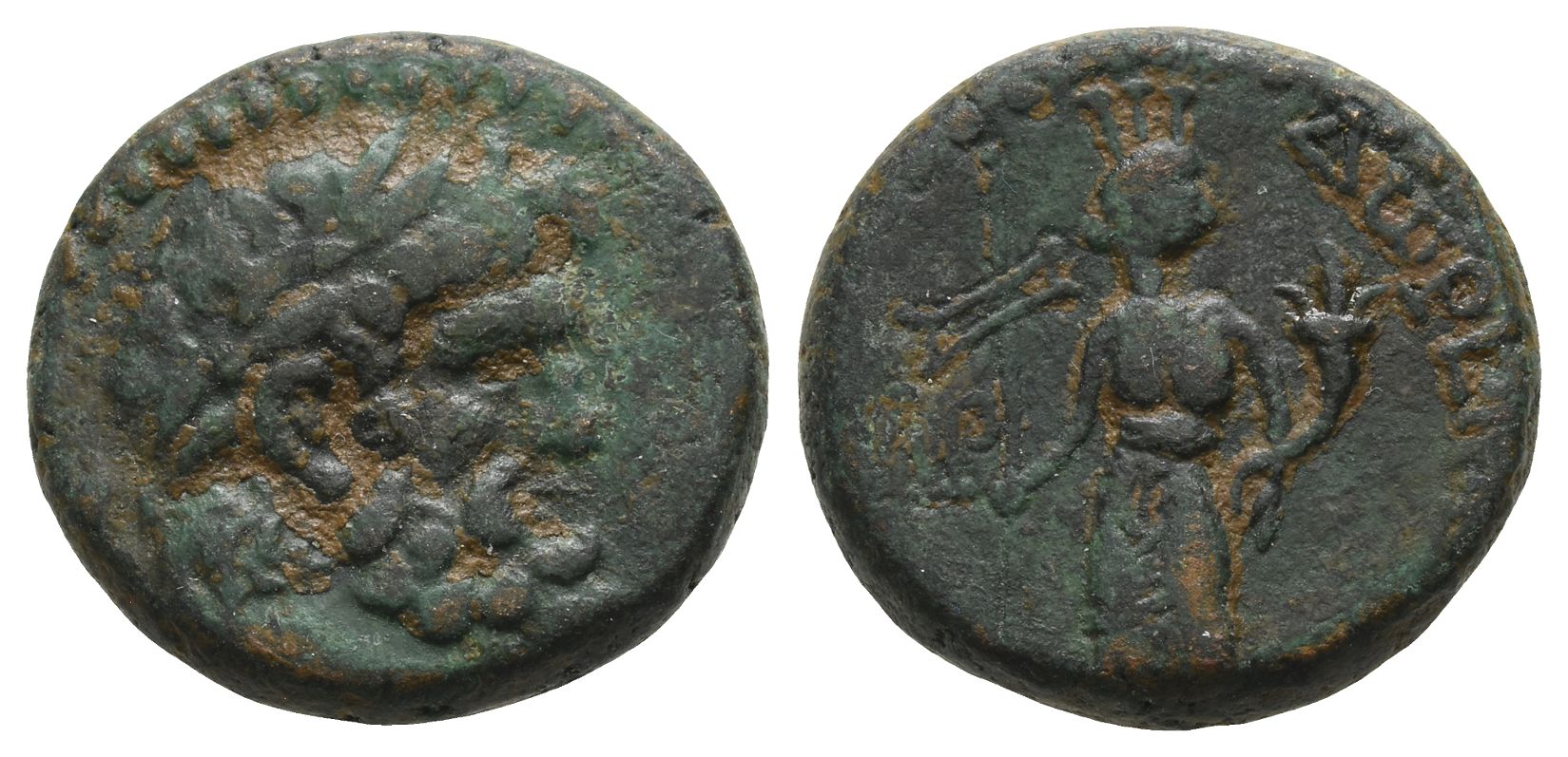 Dated CY 130(?) (AD 66/7). Pseudo-autonomous issue. Laureate head of Doros to right / ΔധΡΕ[ΙΤധΝ], Astarte standing facing, head to right, holding signa and cornucopia; [?]ΛP (date) to left. Cf. RPC I 4758; cf. Meshorer, Dora 20. 9.10gr, 19mm, 12h.