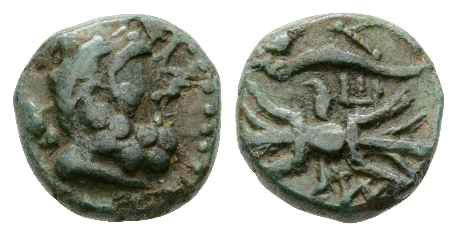 Laureate head of Herakles to right, club over shoulder / Thunderbolt; bow to right, Σ-Ε-Λ across fields. SNG BnF 1979; SNG von Aulock 5288; SNG Copenhagen 263; Lindgren 1353. 2.43gr, 12mm, 5h