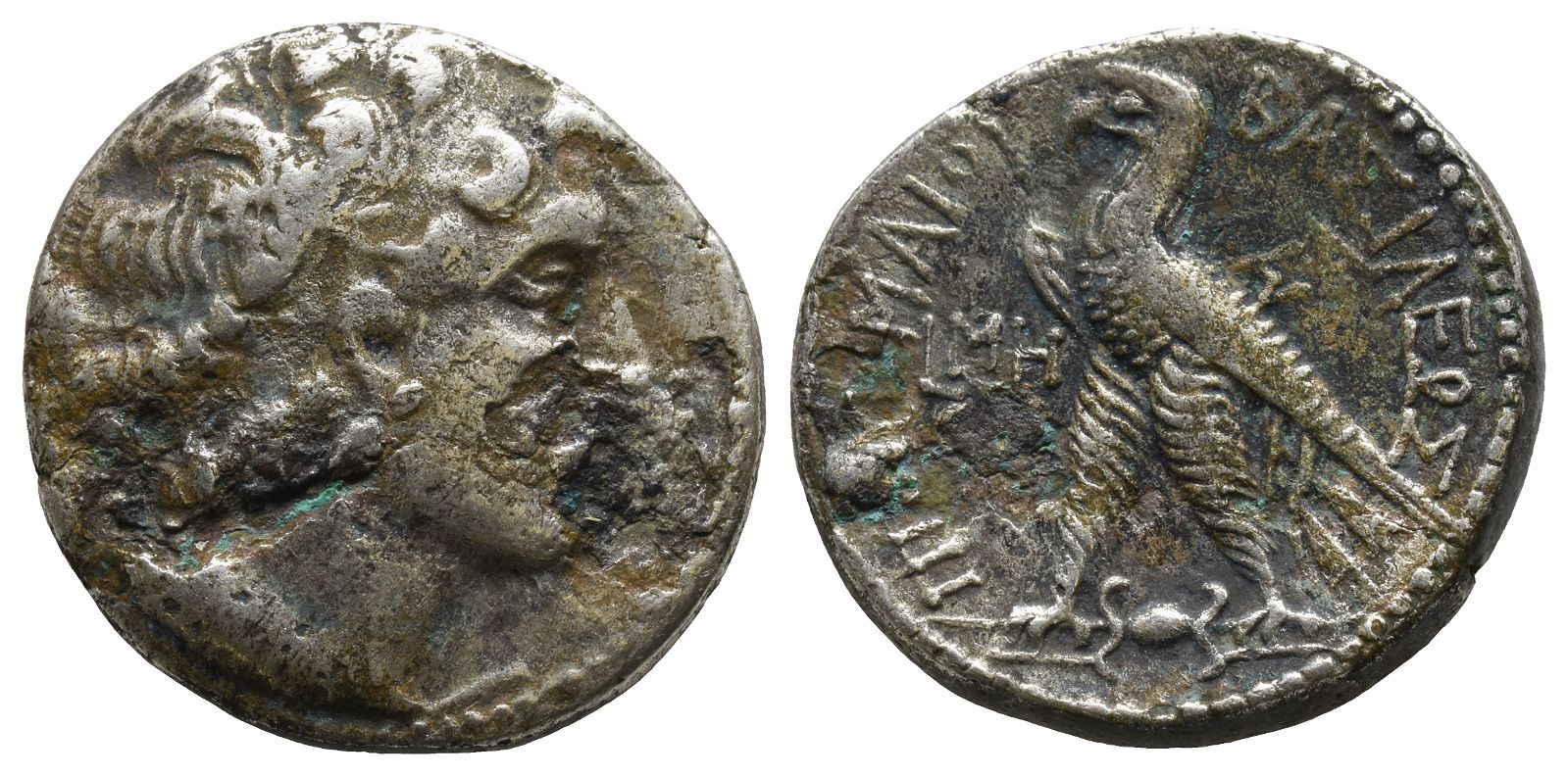 Salamis mint. Dated RY 48 (123/2 BC). Diademed head of Ptolemy I right, wearing aegis around neck / ΠΤΟΛΕΜΑΙΟΥ ΒΑΣΙΛΕΩΣ, eagle standing to left on thunderbolt; L MH (date) to left, ΣA to right. Svoronos 1562; SNG Copenhagen 580-1. 13.02gr, 24mm, 12h.