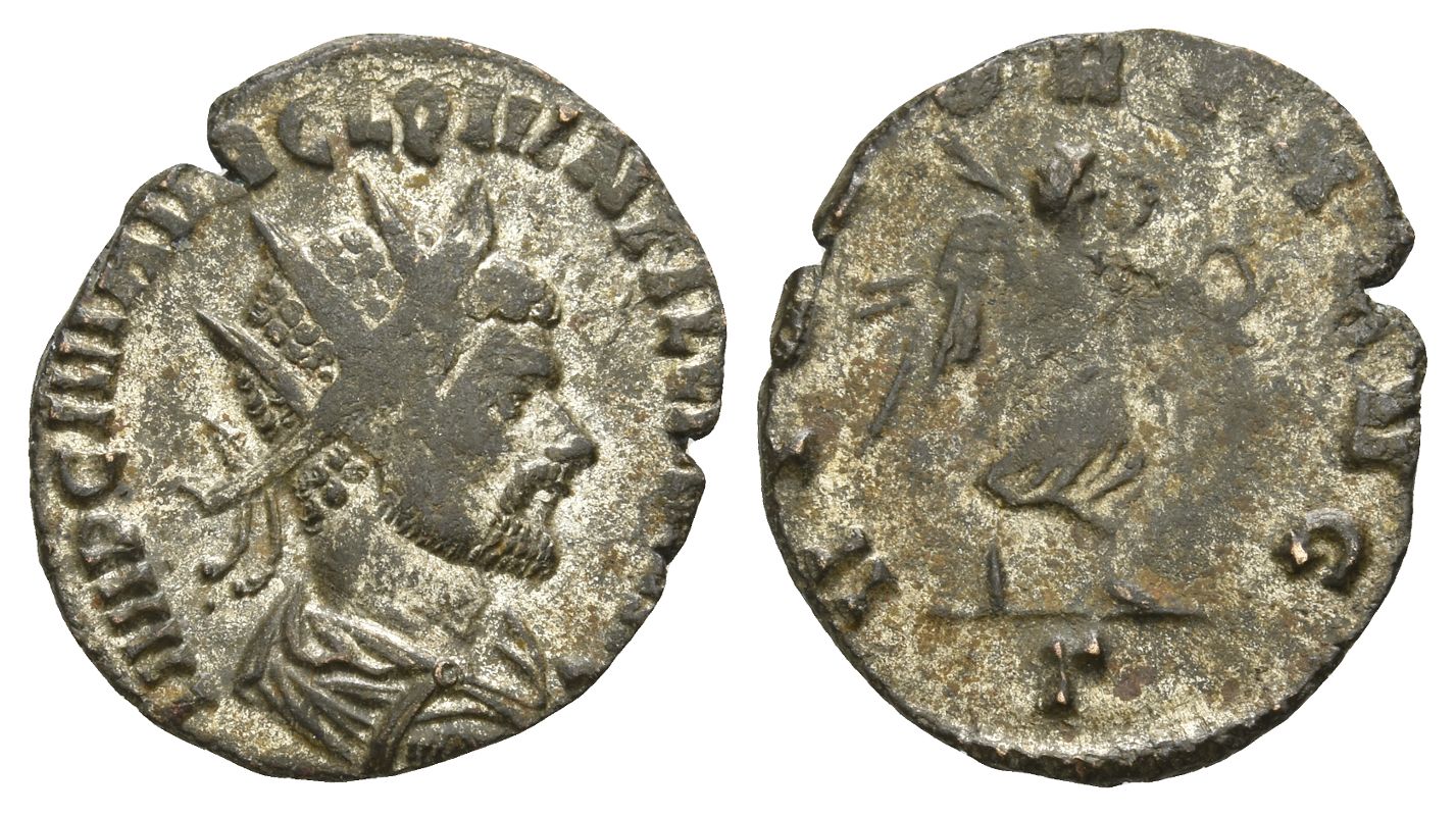Rome mint. 3rd officina. IMP C M AVR CL QVINTILLVS AVG, radiate, draped and cuirassed bust to right / VICTORIA AVG, Victory running to right, holding wreath and palm; Γ in exergue. RIC V.1 33; MER-RIC 1142 (temporary). 2.00gr, 20mm, 11h.