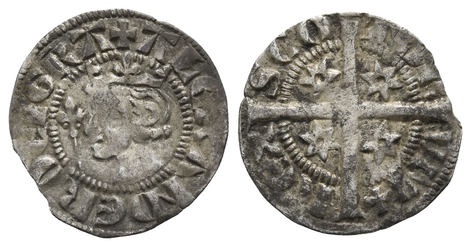 Second coinage. Circa 1280-1286. + ALЄXANDЄR (ND ligate) DЄI GRA, crowned head to left with lis-tipped sceptre / + RЄX SCO-TOR-VM, long cross pattée; mullet of six points in each angle. SCBC 5054. 1.35gr, 19mm, 8h.