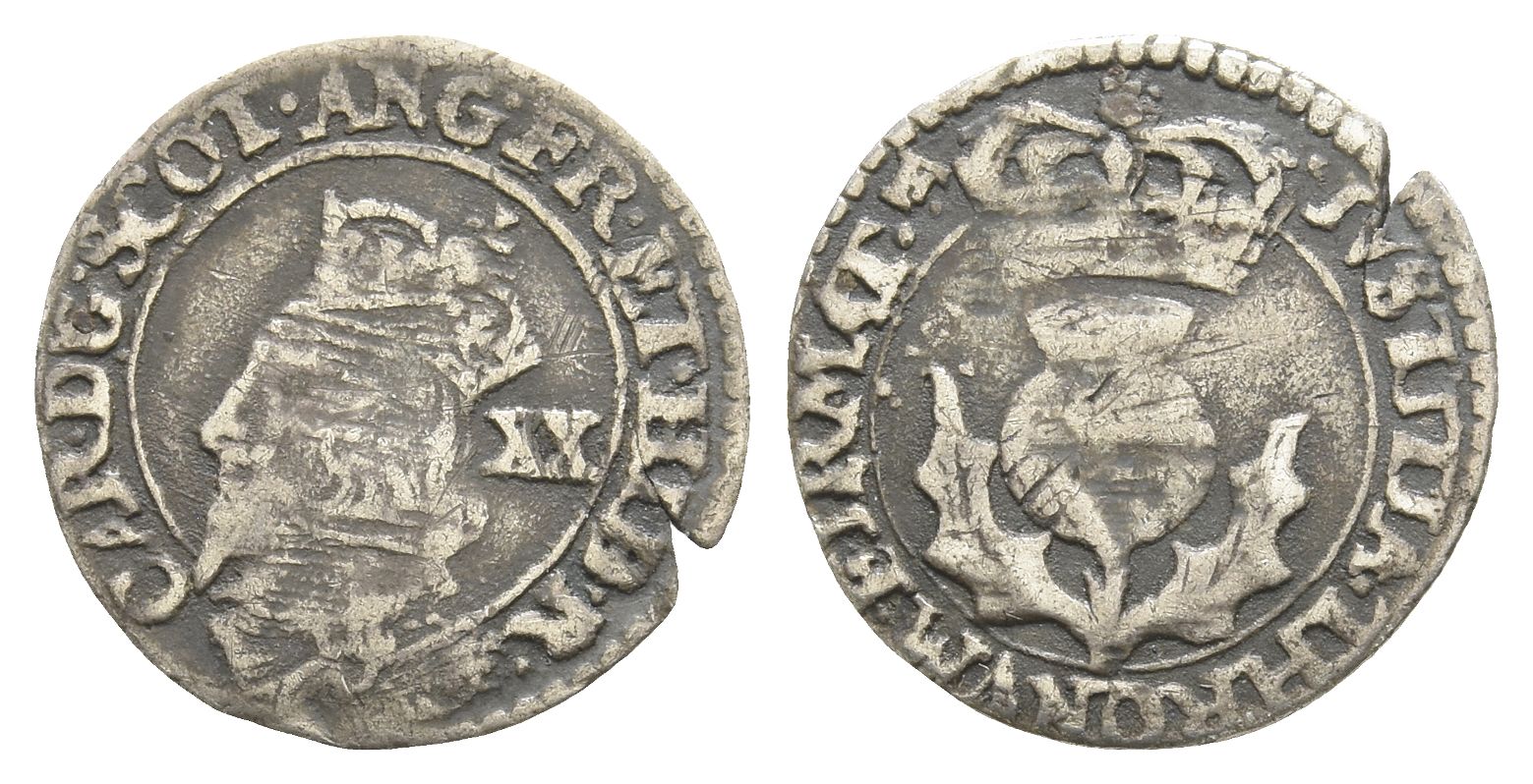 Crowned bust left; XX (mark of value) behind / Crowned thistle; F at the end of legend. SCBC 5588. 0.78gr, 15mm, 7h.