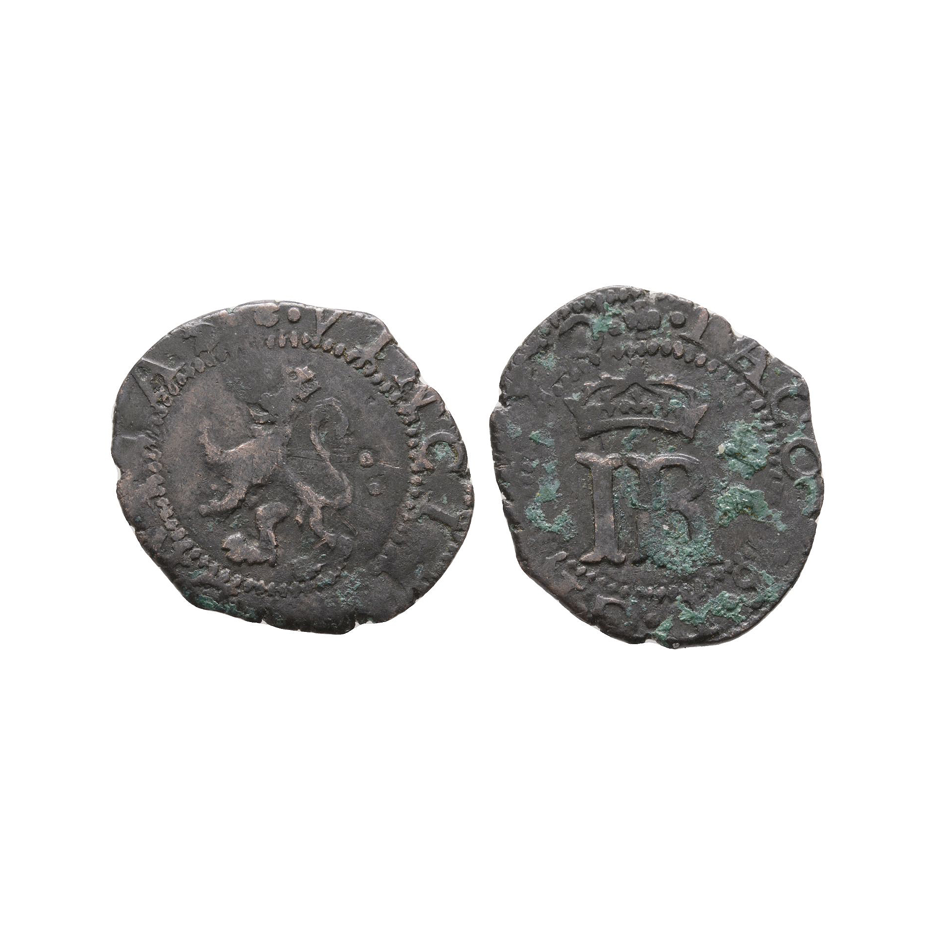 Type II. Obv: crowned I R within beaded inner circle, O: IACOB 6 D G R SCO legend around. Rev: lion rampant left with two pellets behind within beaded inner circle, VINCIT VERITAS legend around. 1.52 grams, 19 mm.