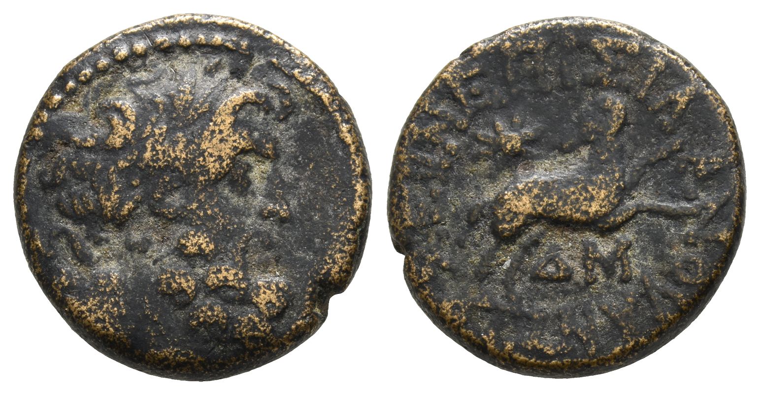 Seleucis and Pieria, Antioch AE 20mm. Dated year 44 of the Actian Era (AD 13/14). Q. Caecilius Metellus Creticus Silanus, legatus Augusti pro praetore. Pseudo-autonomous issue.