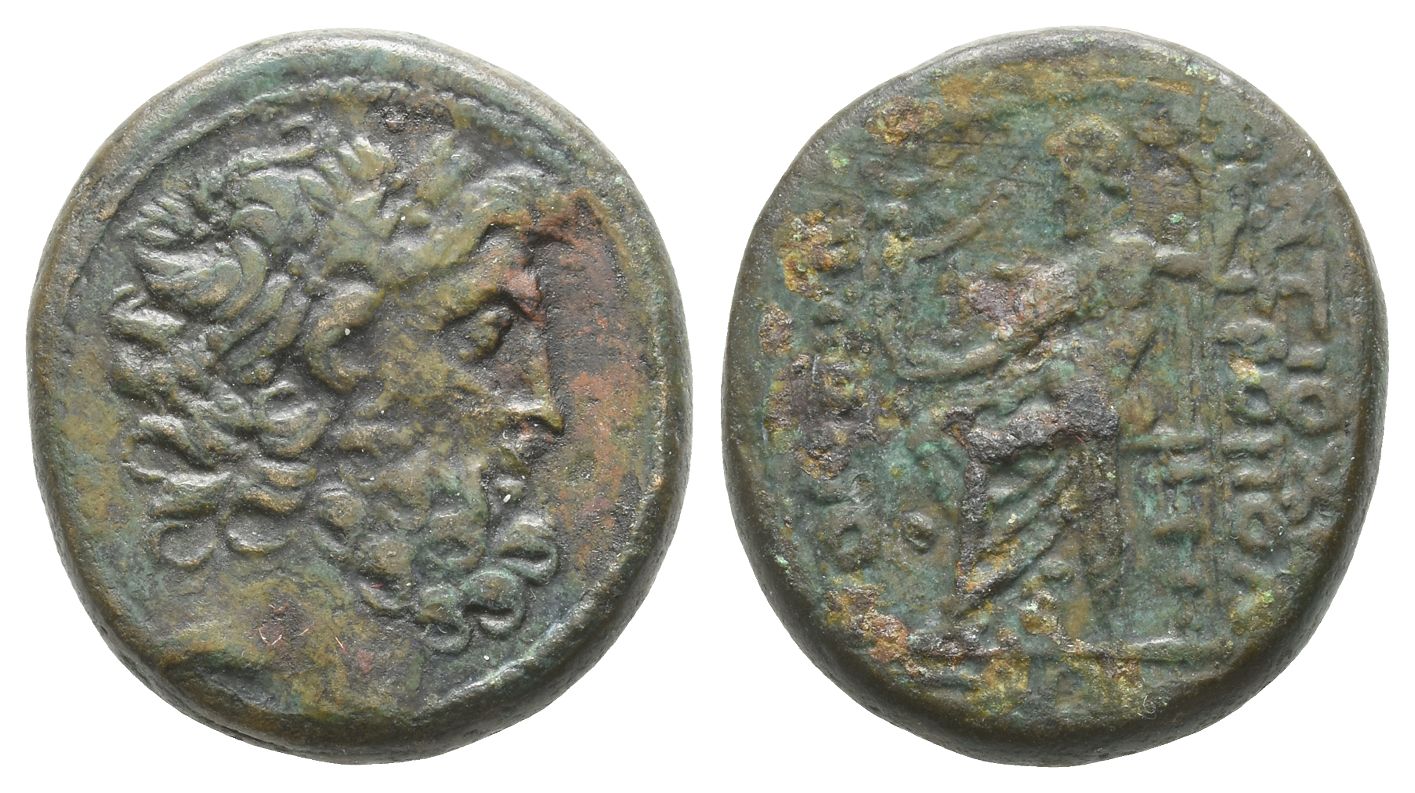 Laureate head of Zeus to right / ANTIOXEΩN THΣ MHTPOΠOΛEΩΣ KAI AVTONOMOV, Zeus seated to left on throne, holding crowning Nike and sceptre; Θ(?) to inner left; date in exergue; all within wreath. Cf. Butcher p.317. 7.94gr, 21mm, 12h.
