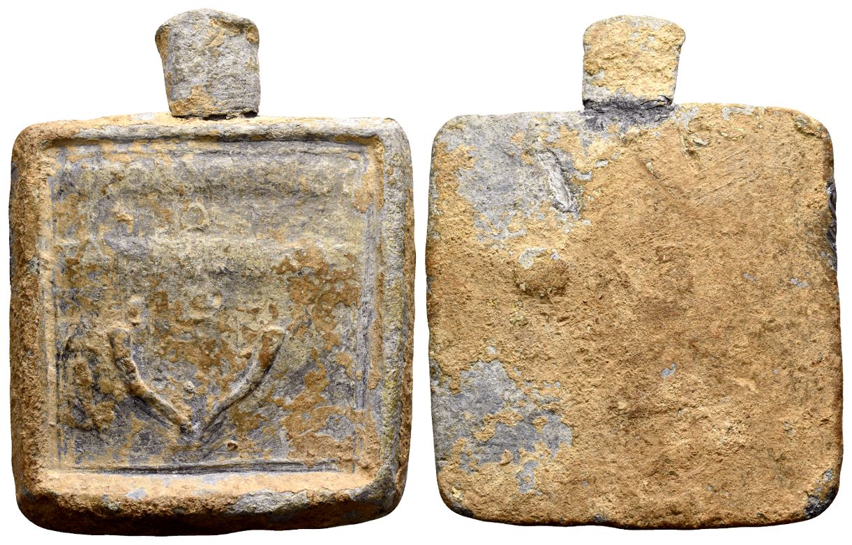 ΑΠΟΛΛധΝΙΟΥ Τ Ο Υ TA[...]OY [...] ꞀΞΡ (date) in five lines, two crossed cornucopiae below, monogram(?) to left / Blank (letters in central field?). Pondera Online -; Weiß Peter, Jenseits der Agoranomie -; Rochesnard -; CPAI -. 362gr, 93mm x 70mm.