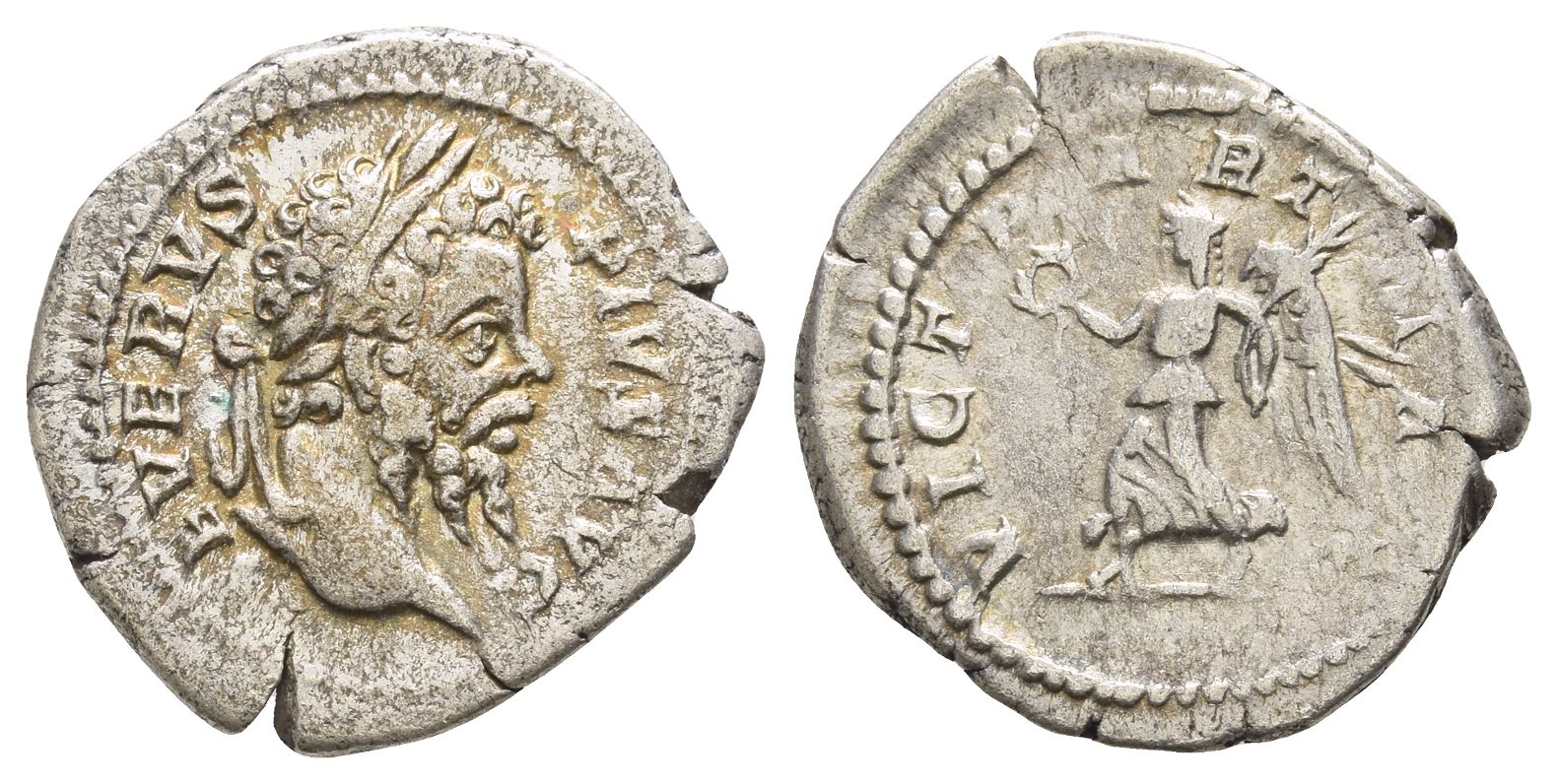 SEVERVS PIVS AVG, laureate head to right / VICT PART MAX, Victory advancing to left, holding wreath and palm-branch. RIC IV 295; BMCRE 365; RSC 744. 3.60gr, 21mm, 7h.