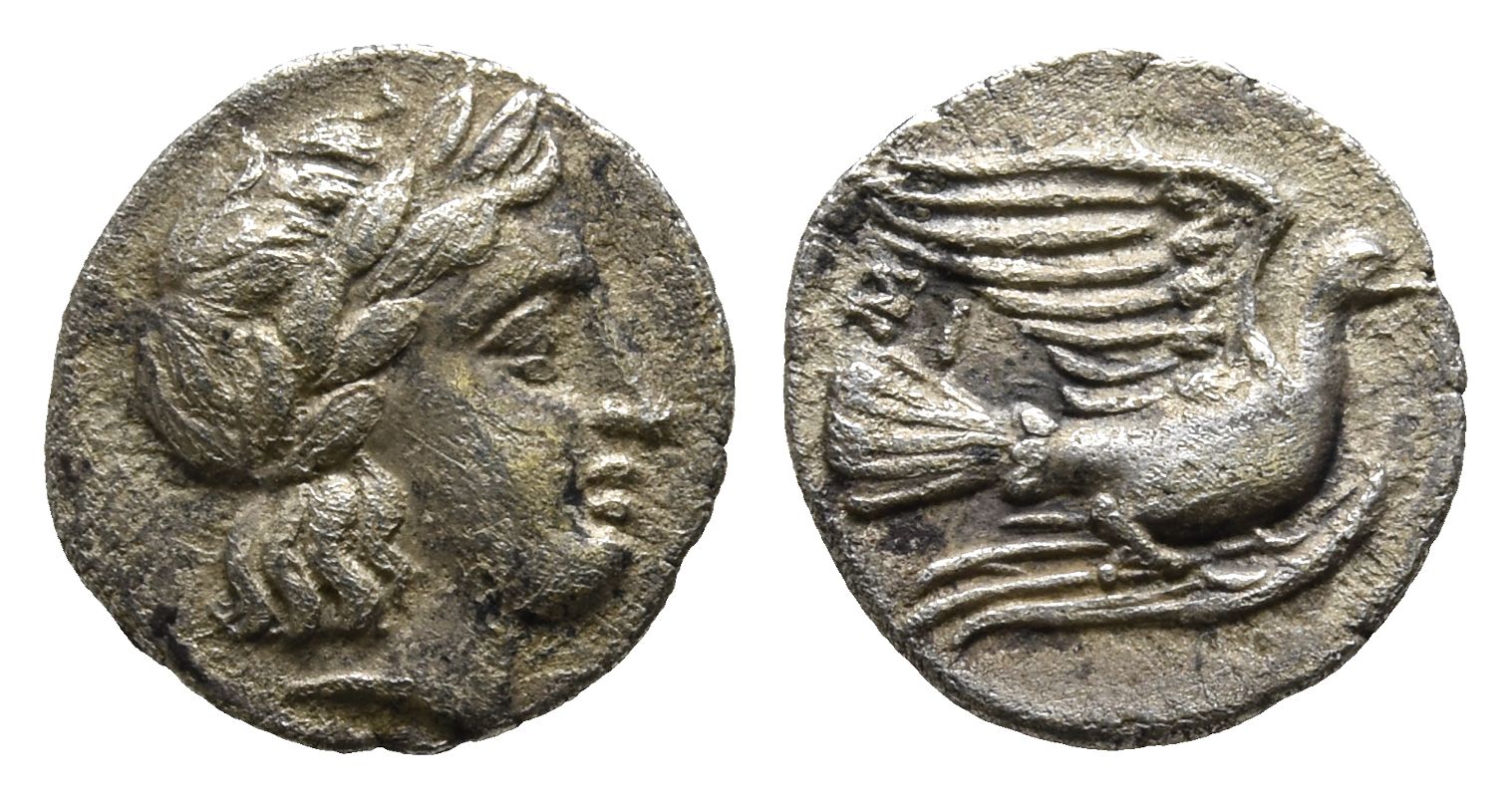 Laureate head of Apollo to right / ΣΙ, dove flying to right. BCD Peloponnesos 257-61. HGC 5, 226. 0.84gr, 12mm, 5h.