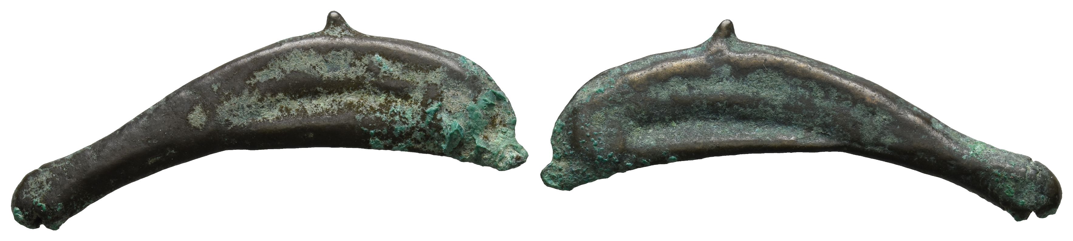 The method of casting this unique type of coin was adopted by the Gallic Celts who originally came from this region. Dolphins were generally struck in the form of a tree attached to the tail, although some examples appear to have been cast individually.