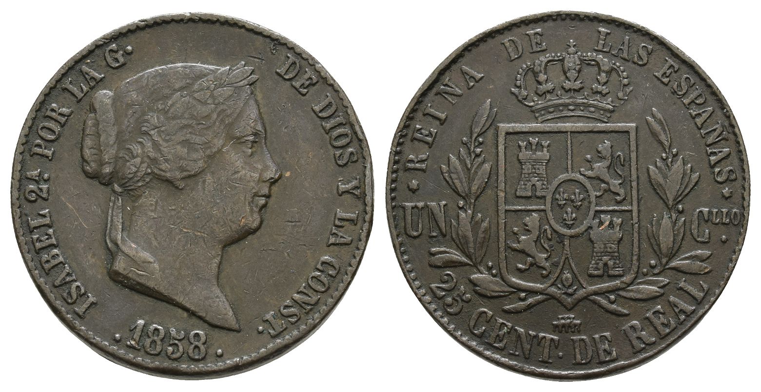 Spain. Isabel II AE 25 Cent de Real. Dated 1858.
