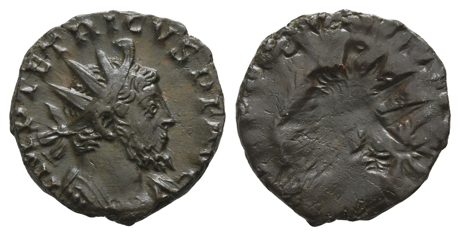 Uncertain mint. IMP TETRICVS P F AVG, radiate and cuirassed bust to right / Incuse of obverse. 2.79gr, 17mm.