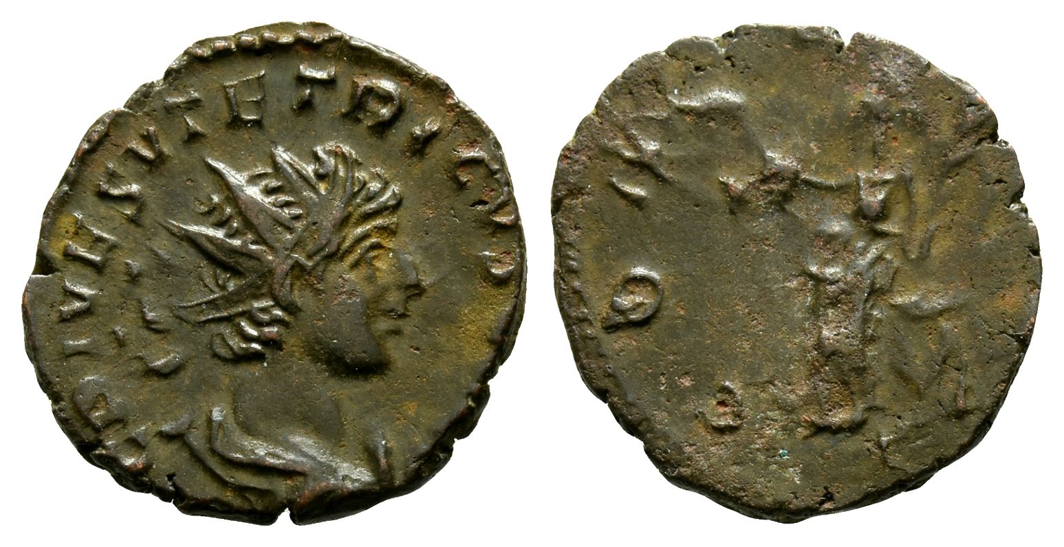 C PIV ESV TETRICVS CAES, radiate and draped bust to right / COMES AVG, Victory standing to left, holding wreath and palm. RIC 224. 1.98gr, 18mm, 6h.