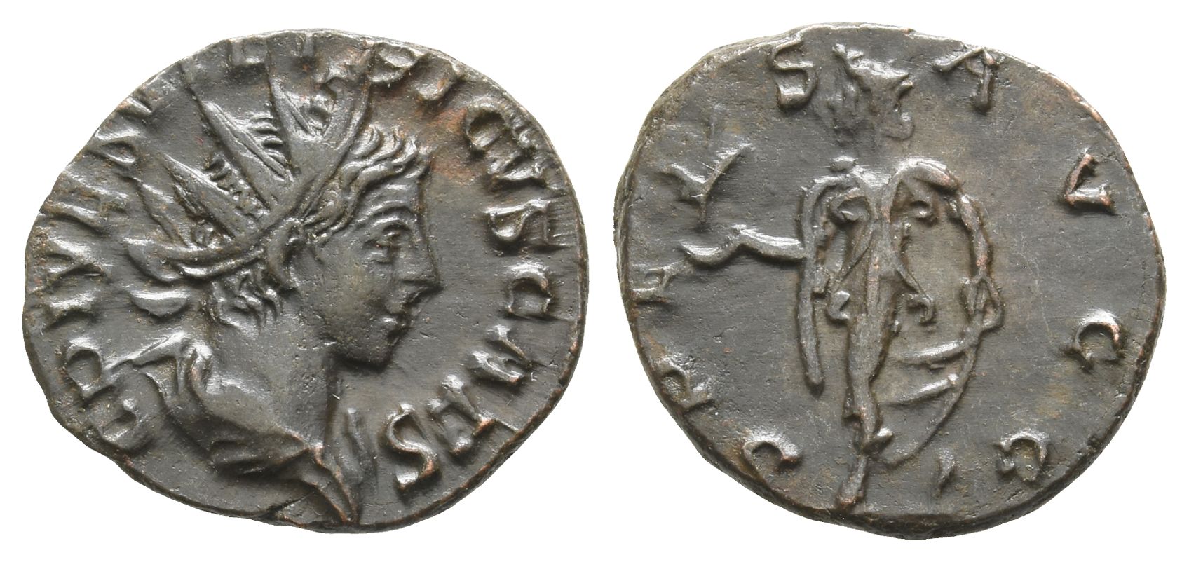 Back to previous pageTetricus II, as Caesar BI Antoninianus. Struck AD 273. Treveri mint.