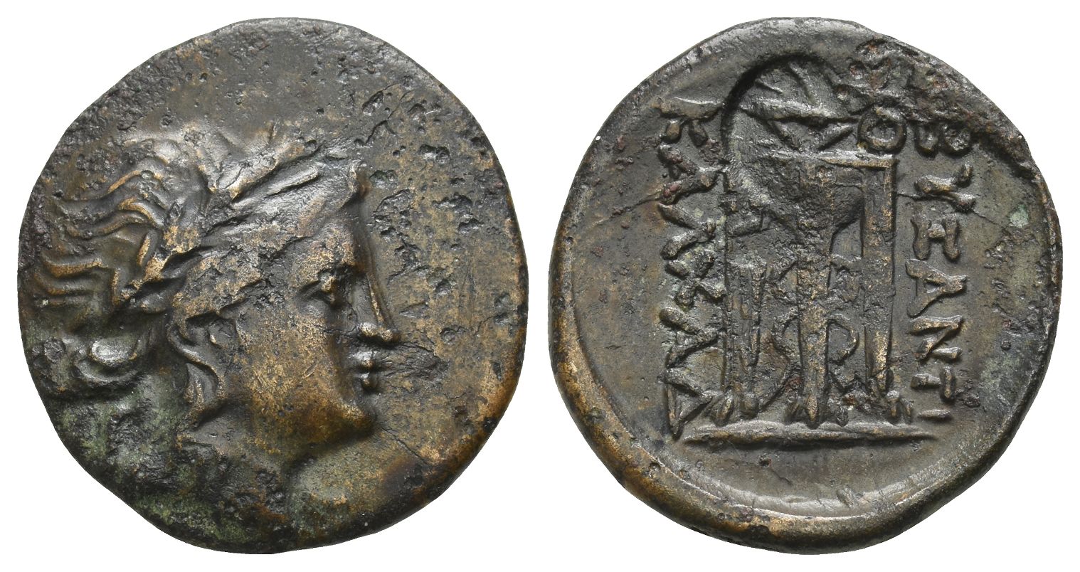 Laureate head of Apollo to right / Tripod; ΒΥZΑNTI to right, ΚΑΛΧΑΔ to left; uncertain countermark. Schönert-Geiss 1283-9; SNG BM Black Sea -; HGC 3.2, 1427. 5.45gr, 23mm, 12h.