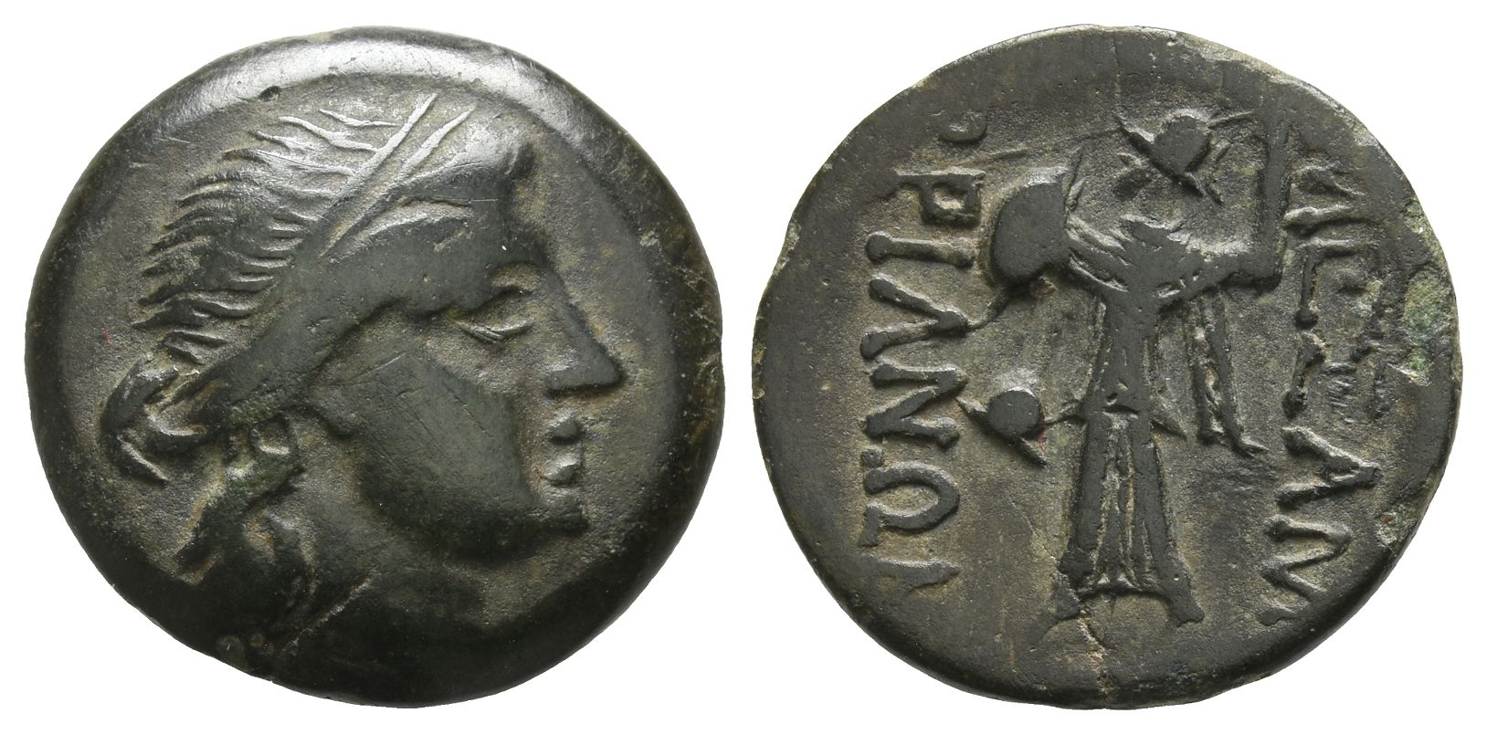 Diademed female head to right / Athena Promachos to left, between MEΣAM-BPIANΩΝ downward to each side, helmet in inner left field. SNG Stancomb 236; SNG BM Black Sea 284-6; HGC 3.2, 1573. 6.48gr, 21mm, 12h.