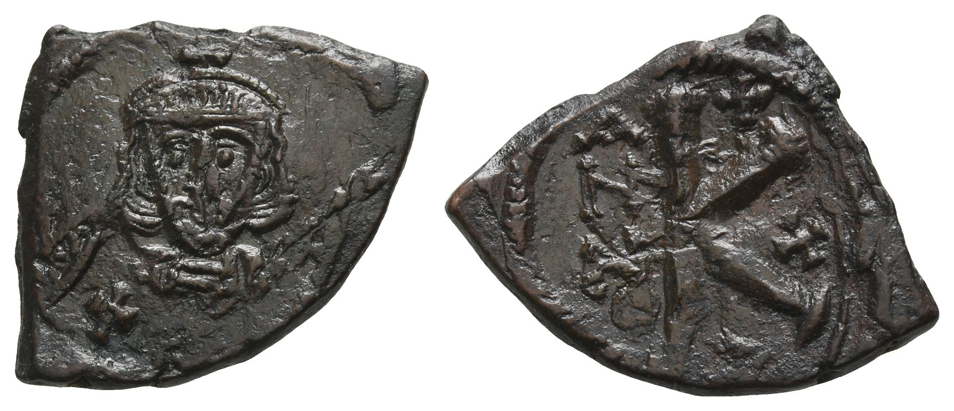 Very Fine. Struck on a triangular flan, most likely made by quartering a large follis of Constantine IV.