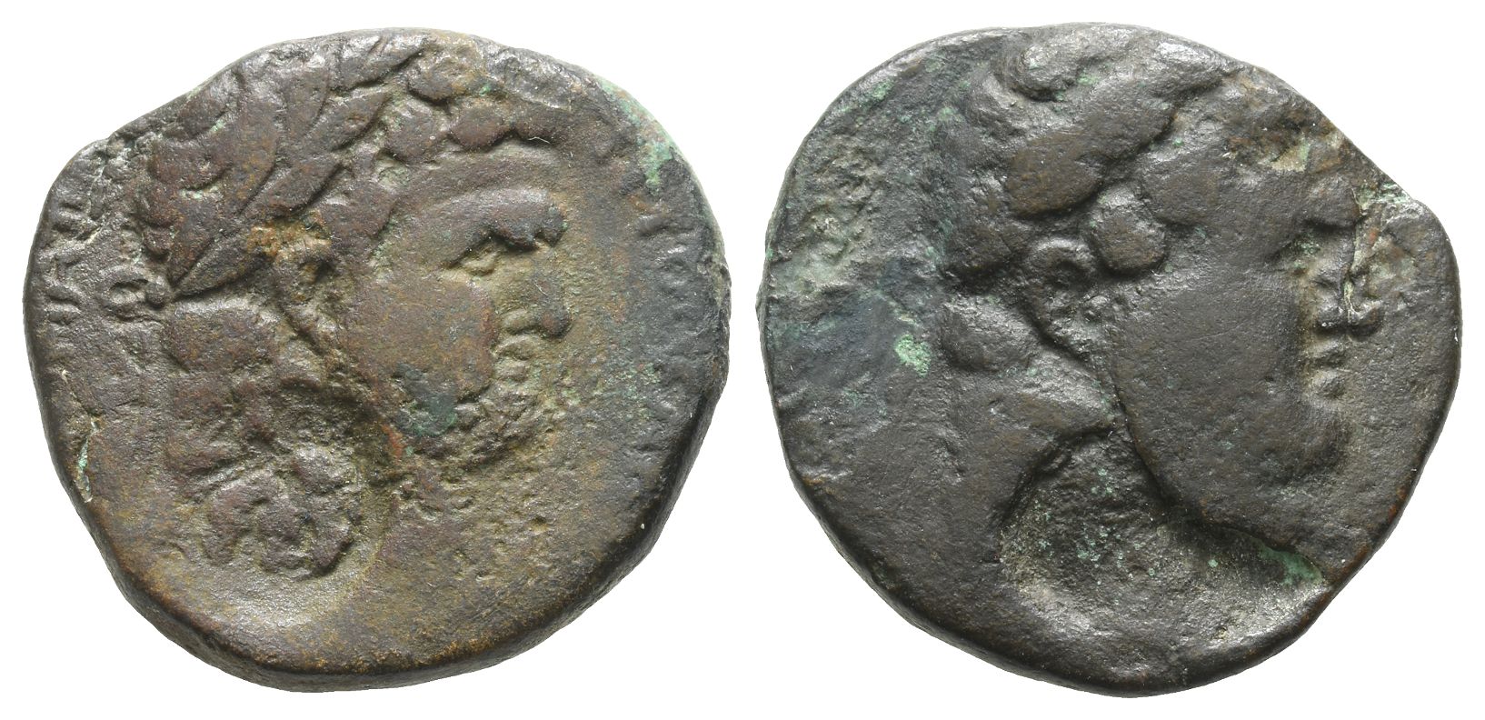 [AYTO]KPAT[ΩP] TITOC KAI[CAP], laureate head of Titus to right; c/m: head of Herakles (Melkarth), bearded, wearing lion's skin to right, within circular incuse / [ΦIΛAΔEΛΦEΩN], laureate head of Herakles-Domitian to right; [L ΓMP (date)] behind. RPC II 2106; Spijkerman 9; Rosenberger 7; for c/m: Howgego 17. 9.67gr, 24mm, 12h.