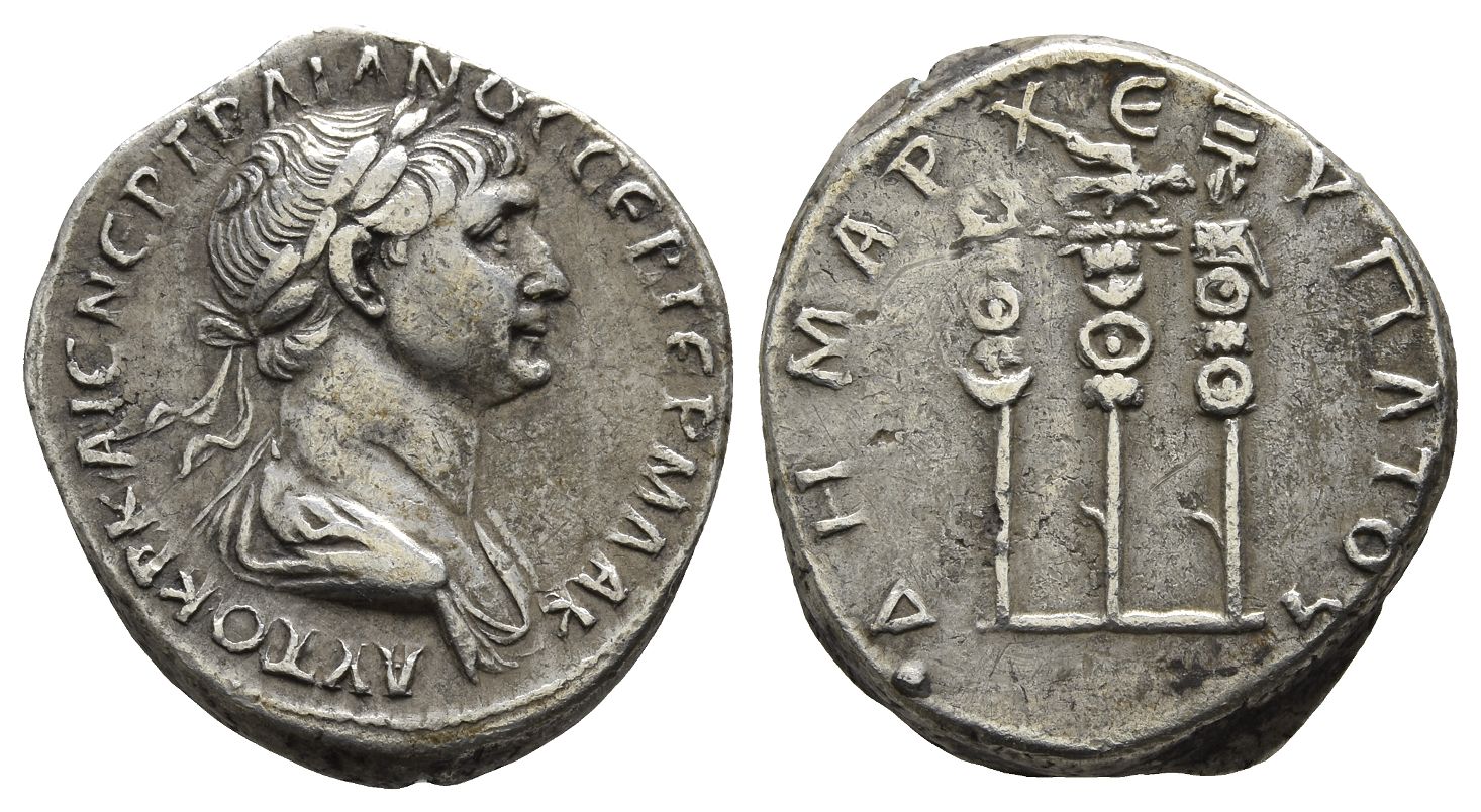Trajan AR Tridrachm of Bostra(?), Arabia. AD 98-117.