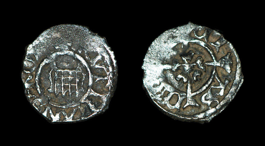 1537-1538 AD, Second Coinage, Canterbury mint. Obv: portcullis with RUTILANS ROSA legend with saltire stop and 'catherine wheel' mintmark. Rev: rose over long cross with DEO GRACIAS legend. 0.17 grams.