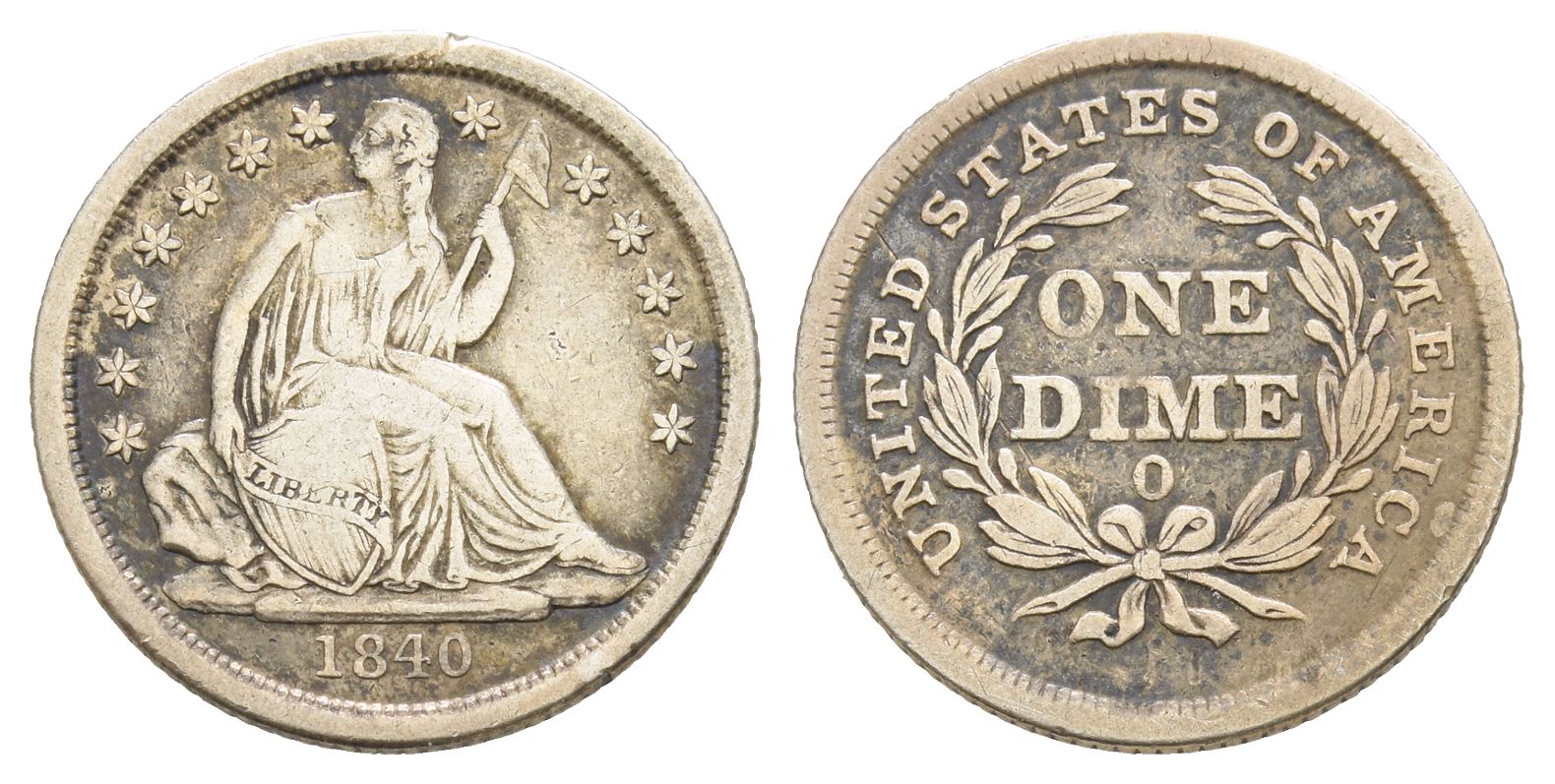 Back to previous pageUnited States of America AR Dime or 10 Cents. Dated 1840. New Orleans mint.