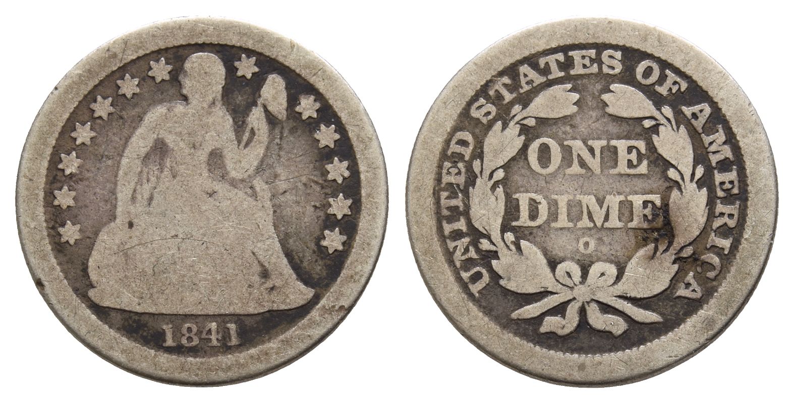 Back to previous pageUnited States of America AR Dime or 10 Cents. Dated 1841. New Orleans mint.