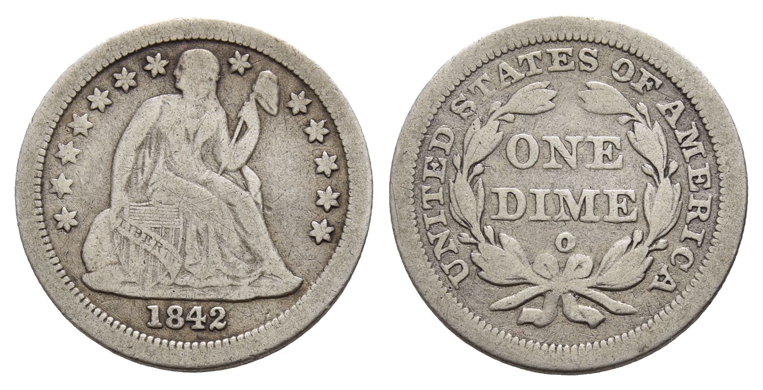 Back to previous pageUnited States of America AR Dime or 10 Cents. Dated 1842. New Orleans mint.
