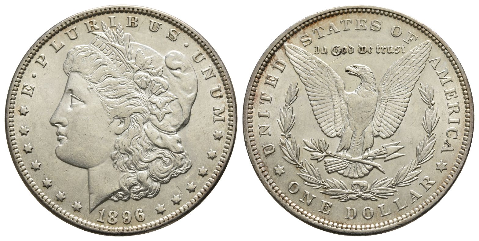 Philadelphia mint. Morgan type. Design by George Thomas Morgan. E • PLURIBUS • UNUM, thirteen stars divided by date below Morgan style Liberty Head / ✶ UNITED STATES OF AMERICA ✶ ONE DOLLAR aroun, IN GOD WE TRUST above eagle clutching laurel and arrows, laurel sprays around. KM 110. 26.53gr, 38mm, 6h.