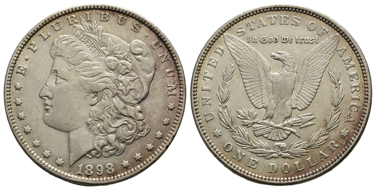 Philadelphia mint. Morgan type. Design by George Thomas Morgan. E • PLURIBUS • UNUM, thirteen stars divided by date below Morgan style Liberty Head / ✶ UNITED STATES OF AMERICA ✶ ONE DOLLAR around, IN GOD WE TRUST above eagle clutching laurel and arrows, laurel sprays around. KM 110. 26.65gr, 38mm, 6h.