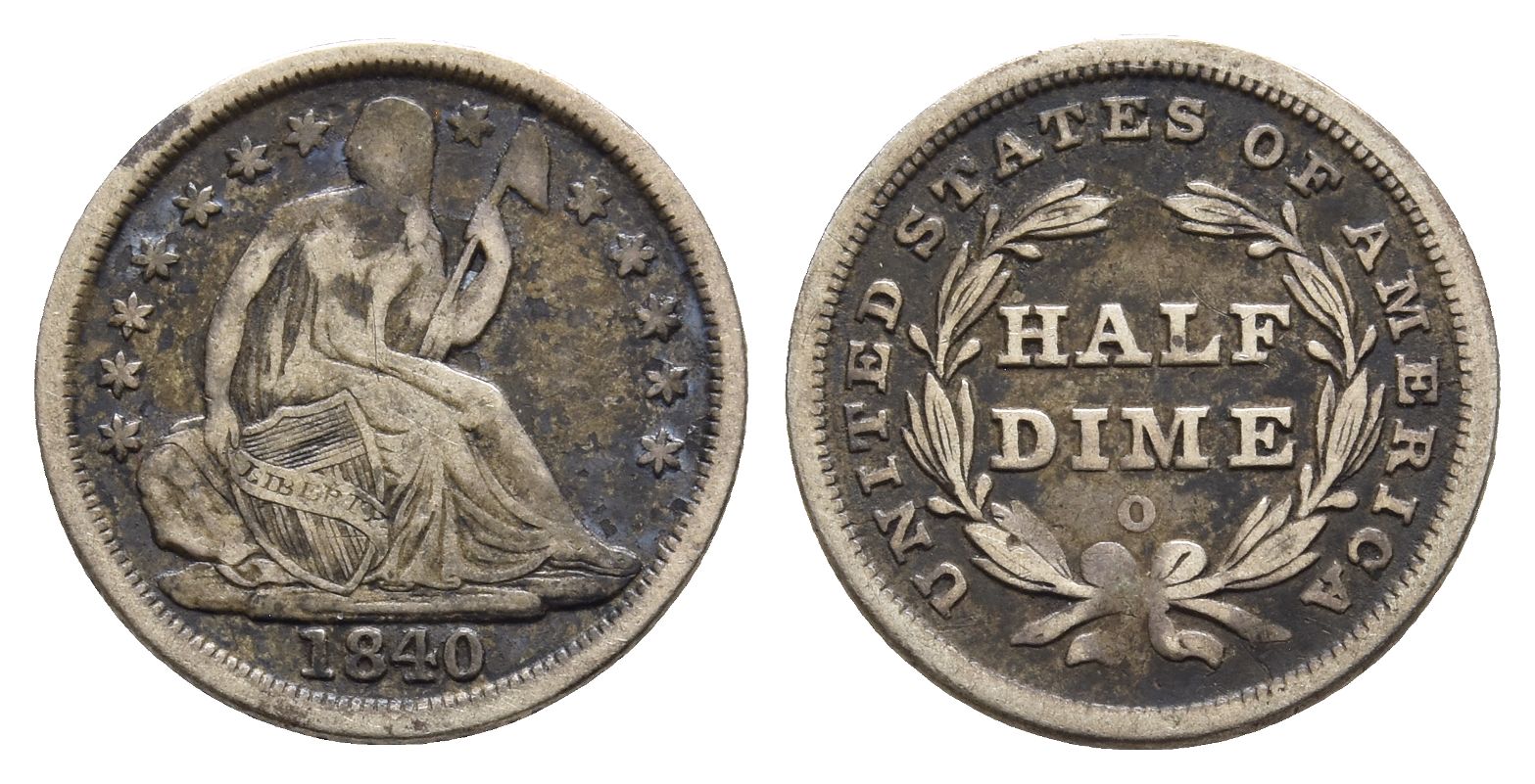 Back to previous pageUnited States of America AR Half Dime or 5 Cents. Dated 1840. New Orleans mint.