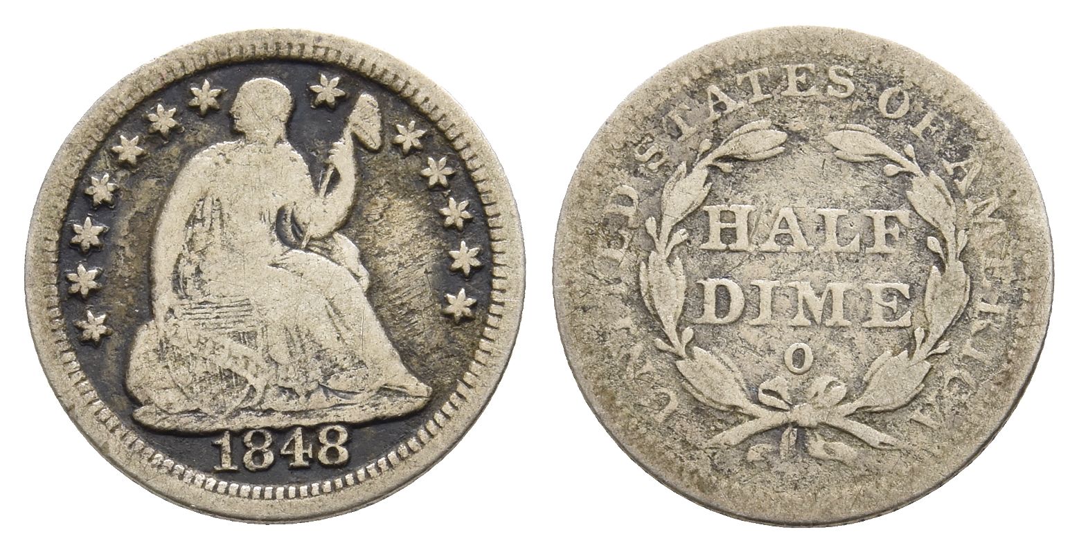 Back to previous pageUnited States of America AR Half Dime or 5 Cents. Dated 1848. New Orleans mint.