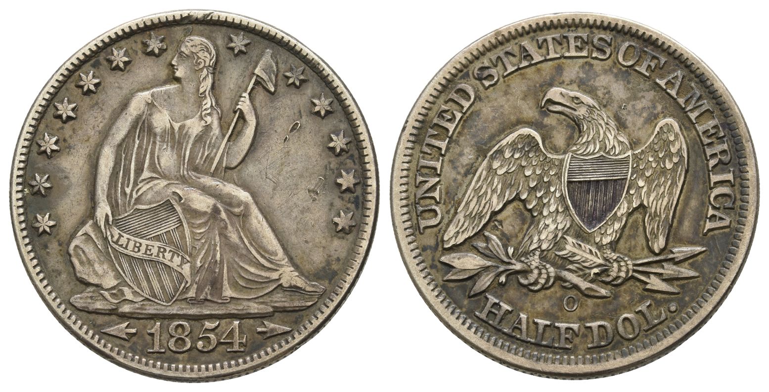 United States of America AR Seated Liberty Half Dollar or 50 Cents. Dated 1854. New Orleans mint.