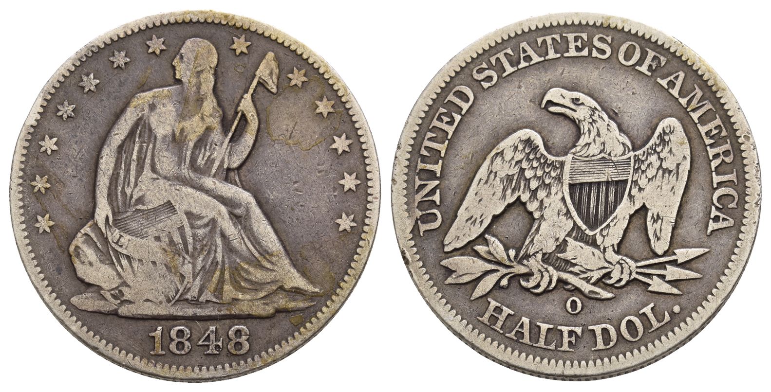 Back to previous pageUnited States of America AR Seated Liberty Half Dollar or 50 Cents. Dated 1848. New Orleans mint.