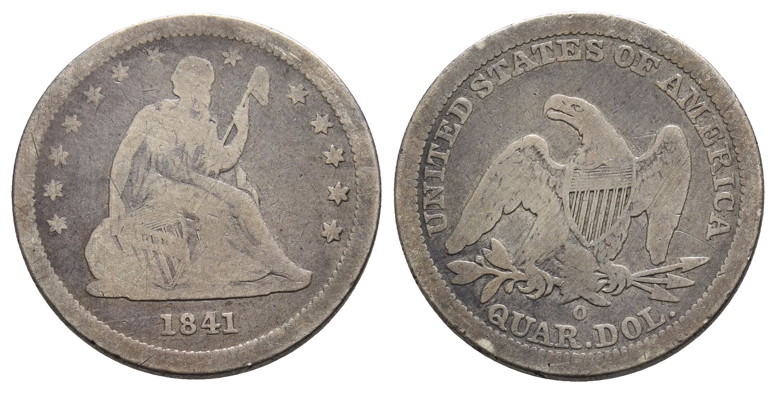 Back to previous pageUnited States of America AR Seated Liberty Quarter Dollar or 25 Cents. Dated 1841. New Orleans mint.