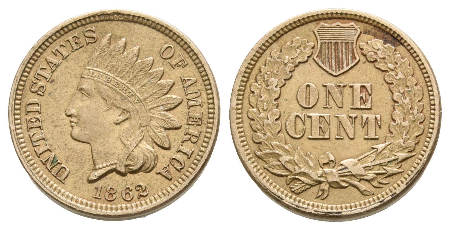 Back to previous pageUnited States of America CU Cent. Dated 1862. Philadelphia mint. "Indian Head Cent" with shield type.