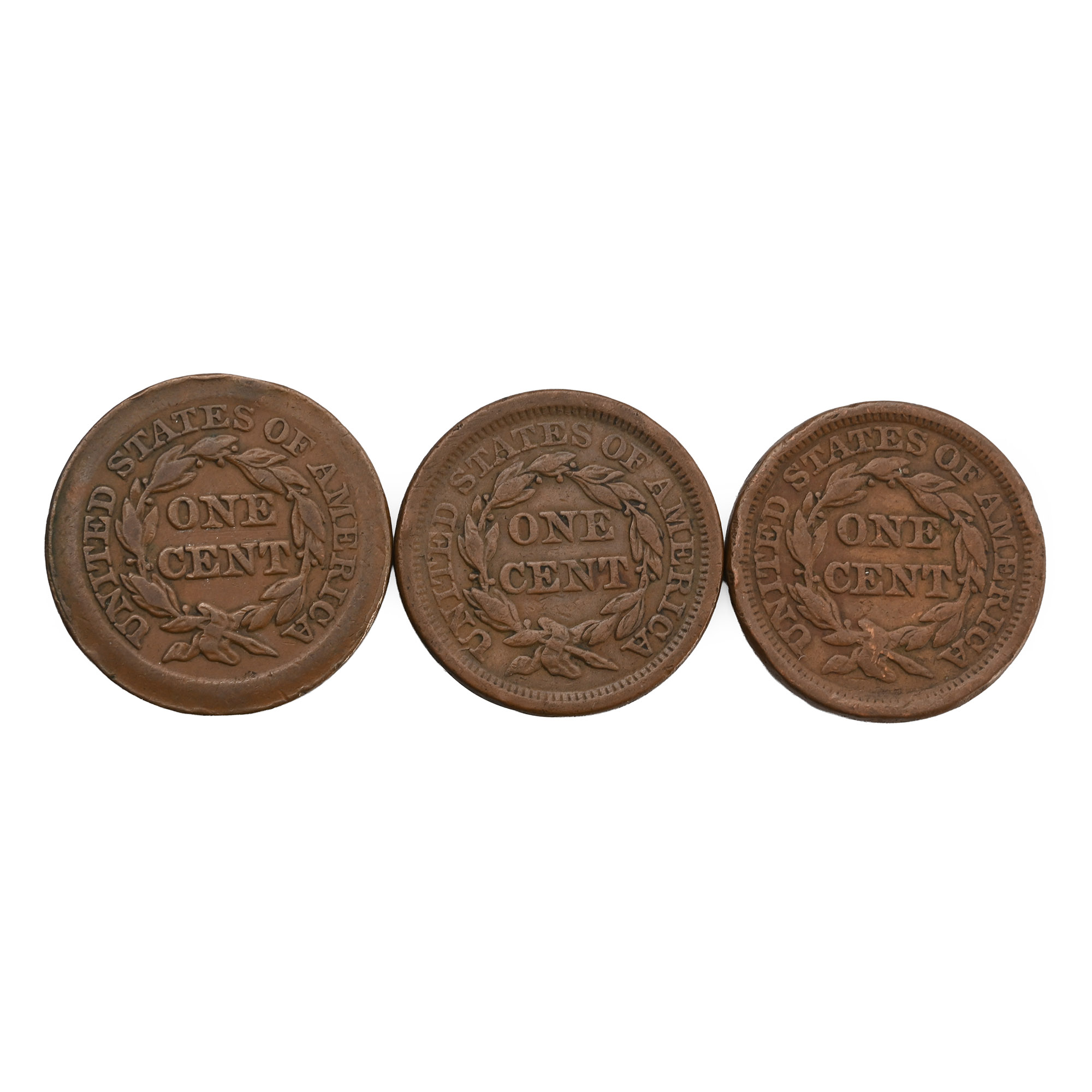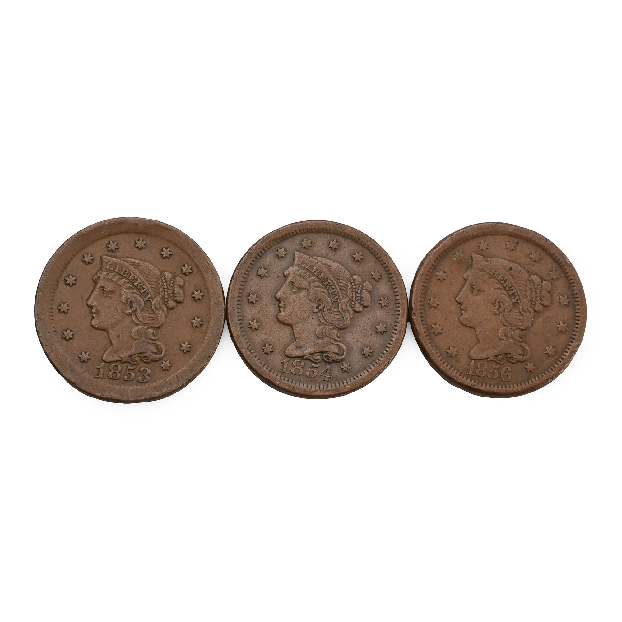 Back to previous pageUnited States of America. Group of Three [3] AE Braided Hair Cents. 1853-1856.