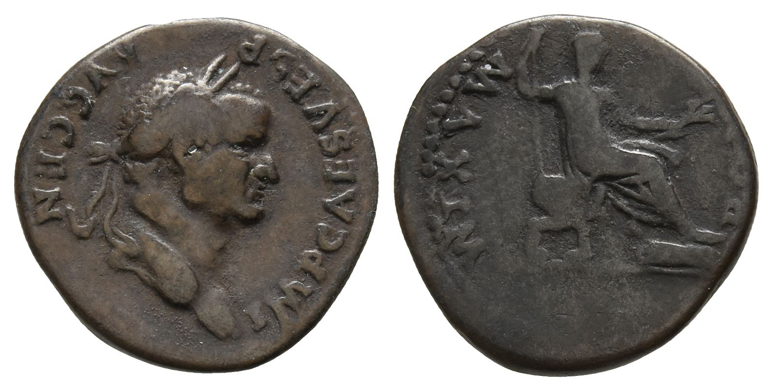 IMP CAES VESP AVG CEN, laureate head to right / PO[NTIF] MAXIM, emperor seated to right on curule chair, holding sceptre and branch. RIC II.1 545; Cohen 387; BMC 1977. 2.82gr, 19mm, 12h.