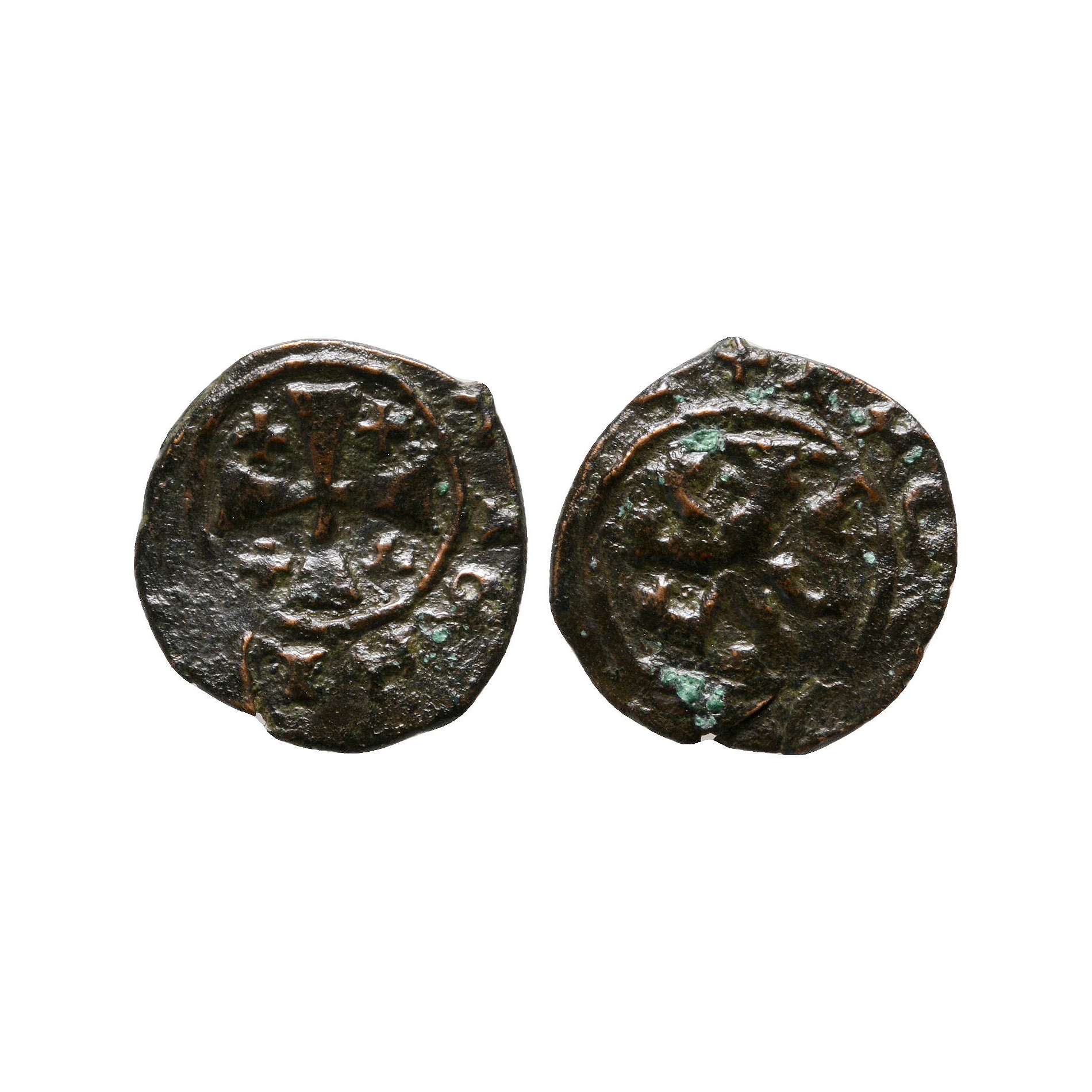 World Coins - Crusader Issues - Lusignan Kingdom of Cyprus - Janus - AE Denier 1398-1432 A.D.