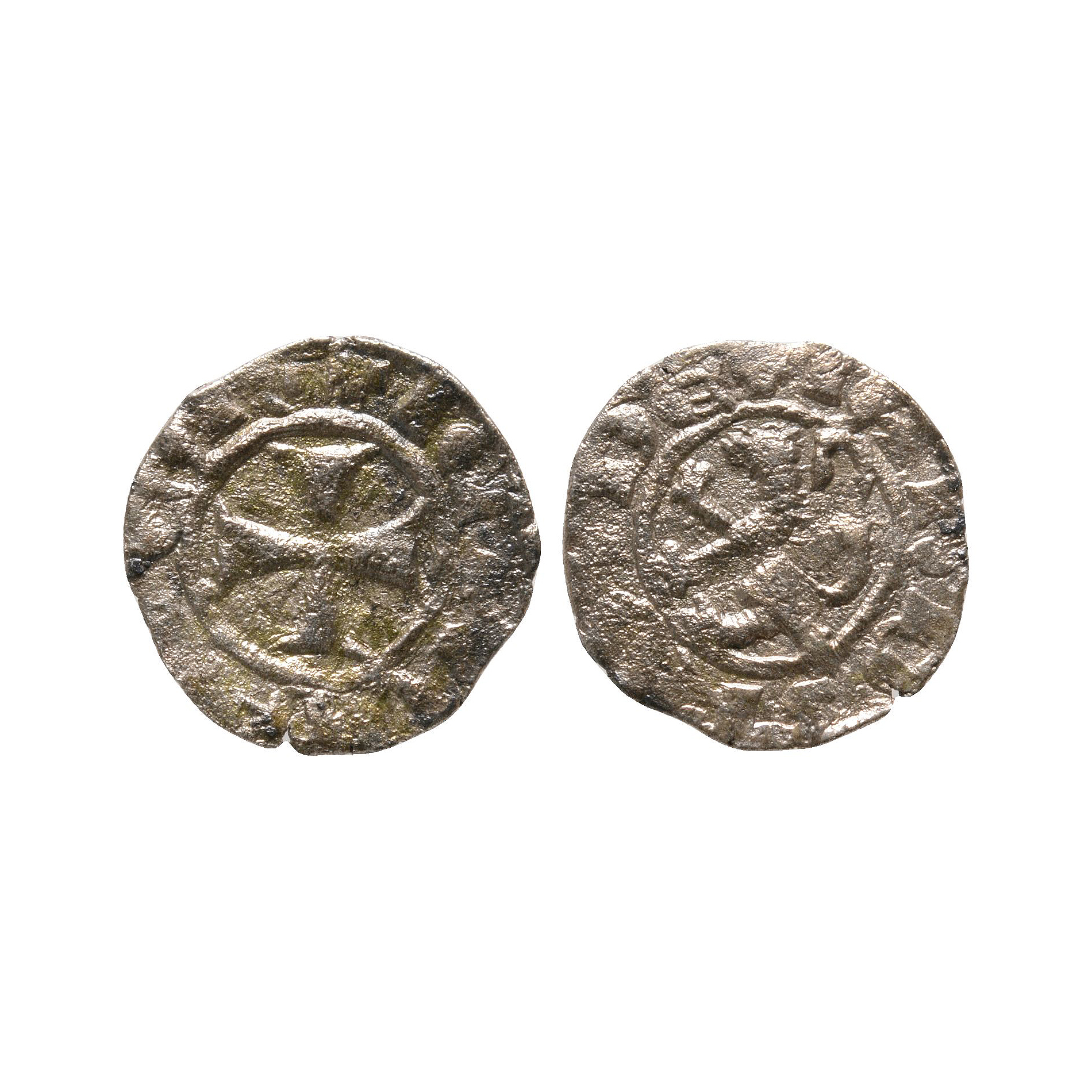 Obv: legend around cross pattée; annulet in each quarter. Rev: legend around rampant lion. 0.54 grams.