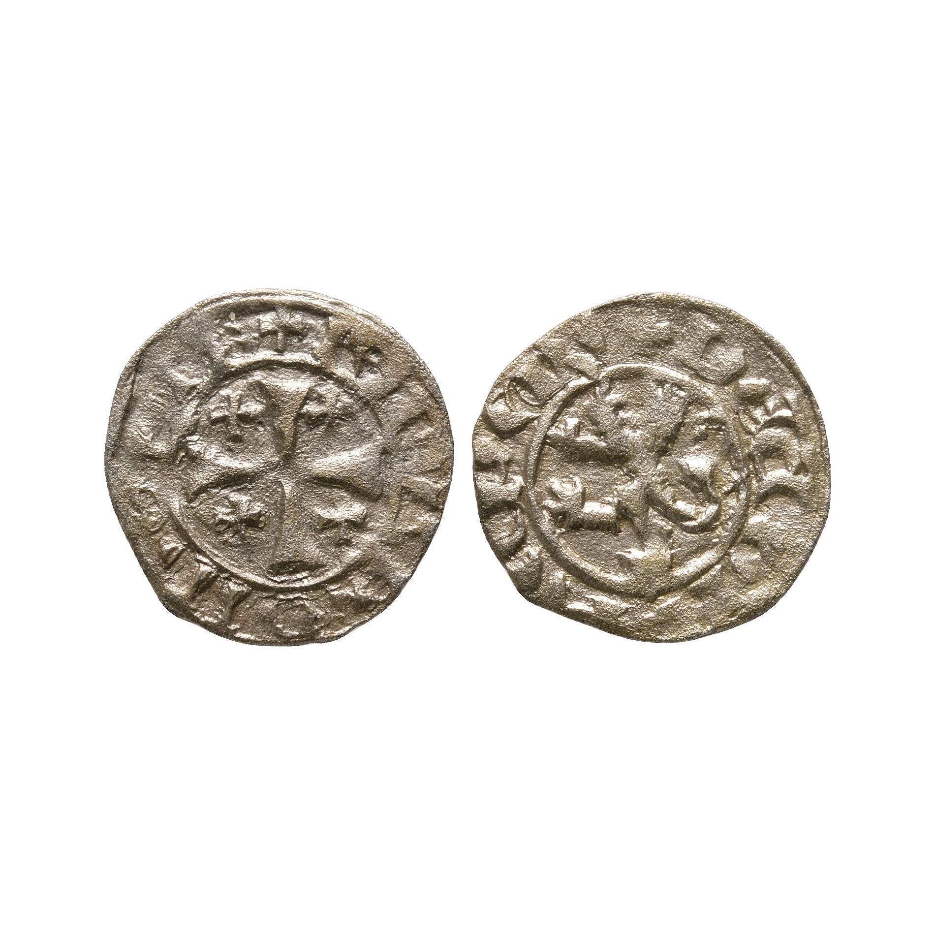 Obv: legend around cross pattée; cross in each quarter. Rev: legend around rampant lion. 0.55 grams.