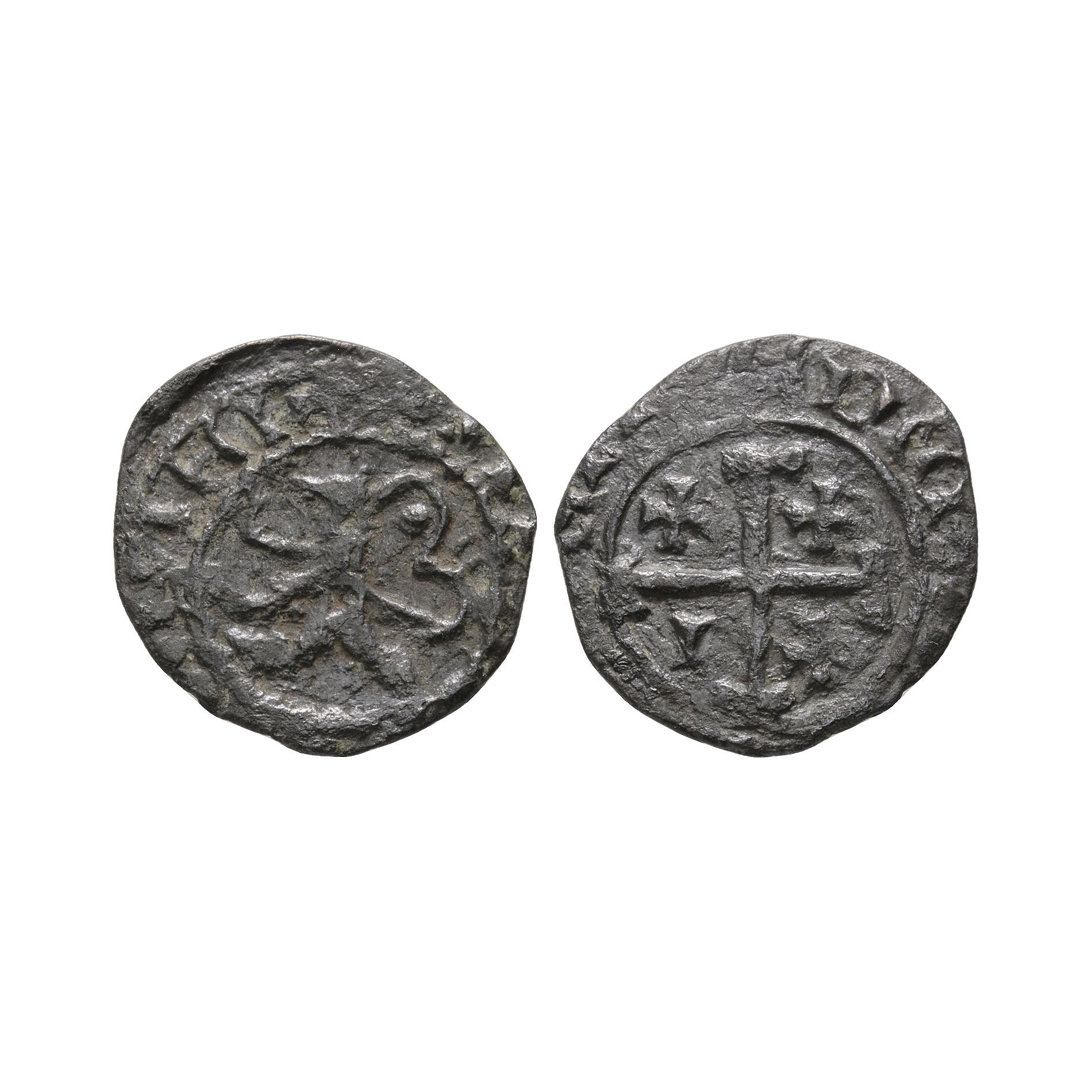 Obv: + IANVS ROI DЄI GRAIA, lion rampant left. Rev: + IЄRUSALЄM•CIPI (sic), cross of Jerusalem with square centre; crosses in three quarters, I in one quarter. 1.40 grams, 19 mm.